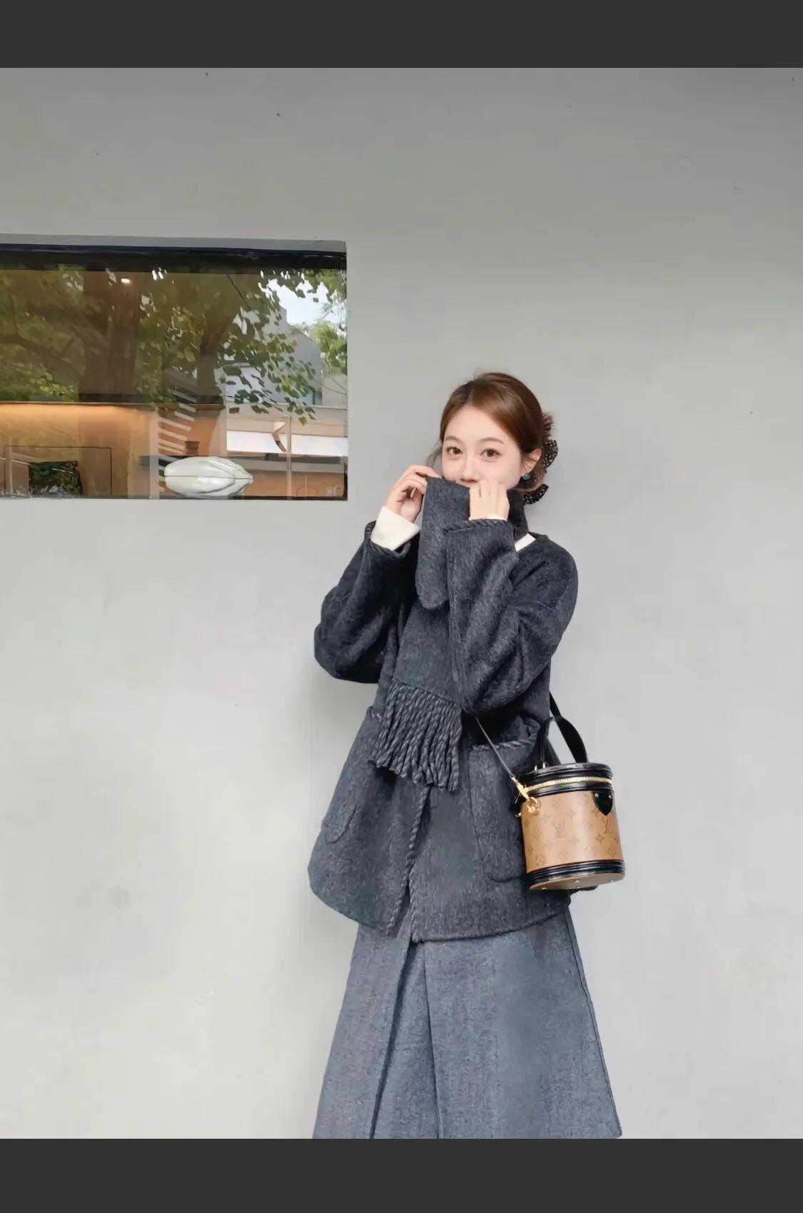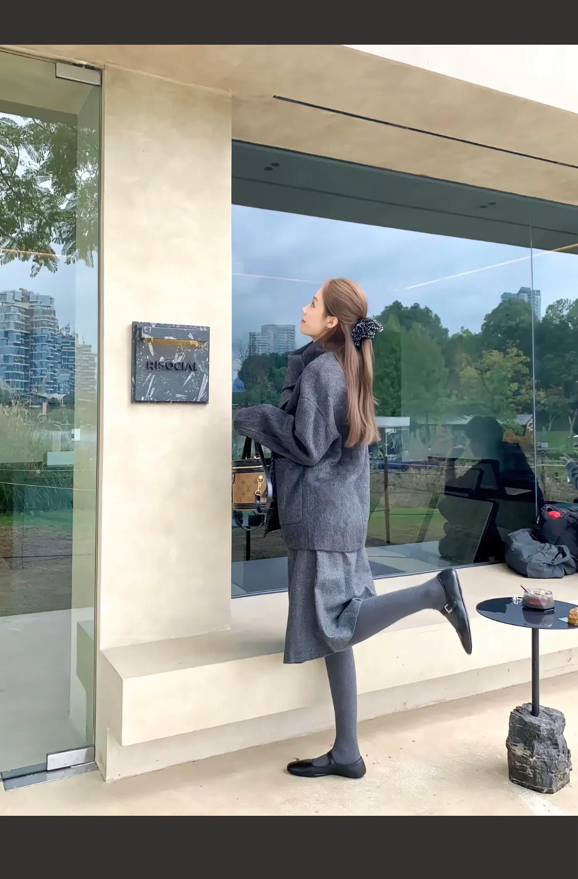 灰色大衣搭配黑色长靴,优雅气质满满!