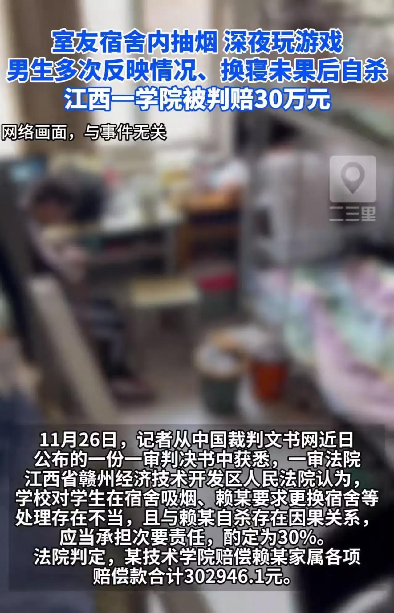 “5名舍友4个抽烟,每天打游戏到凌晨2点,新生多次求换寝未果后选择自杀,学校被判次责,赔偿30万元!网友:学校应负全责!该生已向学校报告,校方既不制止吸烟者,也不给学生调换宿舍,已是渎职!造成成该生死亡,应当追究有关责任人的渎职责任,并给予惩戒! 这是一则令人心碎的新闻,也是一面镜子,映照出我们社会中那些被忽视的角落——学生的权益、校园的责任、以及我们对生命的尊重。一个年轻的生命,因为无法忍受的环境和学校的冷漠,选择了永远的离开。这背后,究竟隐藏着多少未被察觉的痛苦与无助? 我们常说,学校是学生成长的摇篮,应该是温暖、安全的港湾。然而,现实中,许多学生在校园里却像行走在刀锋上。抽烟、打游戏、熬夜成了部分宿舍的“常态”,而学校似乎早已习以为常,甚至视而不见。面对学生的求助,学校的冷漠和推诿,是否让我们每一个人都该深思? 更令人愤怒的是,这位新生多次求换寝,却未得到任何帮助。学校的责任在哪里?难道只是把学生当成了可以忽略的“数字”和“问题”?这样的管理失职,是否应当承担全部责任?更何况,最终导致这位年轻生命的离去,责任就更不容推卸。 这起事件让我们不得不反问:我们的校园安全体系在哪里?学生的权益又在哪里?难道只有在悲剧发生后,才会有人站出来追责?如果我们不从根本上改善校园环境,不从制度上保障学生的权益,类似的悲剧还会一再上演。 网友们的愤怒和呼吁,是对这个社会、对教育体系的一次警醒。生命只有一次,没有任何理由可以成为冷漠和推诿的借口。学校应当承担起应有的责任,追究渎职者的责任,给予受害者应有的公正。 这不仅仅是一场关于一名学生的悲剧,更是一场关于我们社会价值观的反思。我们是否还在为“规则”而冷漠?是否还在为“责任”而推诿?每一个生命都值得被尊重,每一个学生都应得到关怀和保护。只有这样,我们的校园才能成为真正的“育人之地”,而不是悲剧的温床。 希望这起事件成为一个转折点,让我们共同呼吁:关注学生的身心健康,强化校园管理责任,杜绝冷漠与推诿。因为,生命没有重来,我们不能让悲剧再次上演。学生校外自杀 小伙自杀