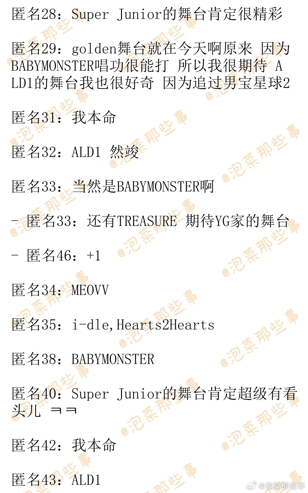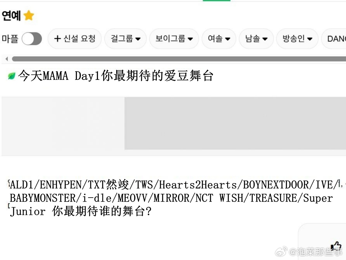 🔥韩网热帖评论翻译🔥MAMA Day 1爱豆舞台你最期待的是? 韩网原帖帖主发问:ALD1/ENHYPEN/TXT崔然竣/TWS/Hearts2Hearts/BOYNEXTDOOR/IVE/BABYMONSTER/i-dle/MEOVV/MIRROR/NCT WISH/TREASURE/Super Junior 你最期待谁的舞台?cr.instiz