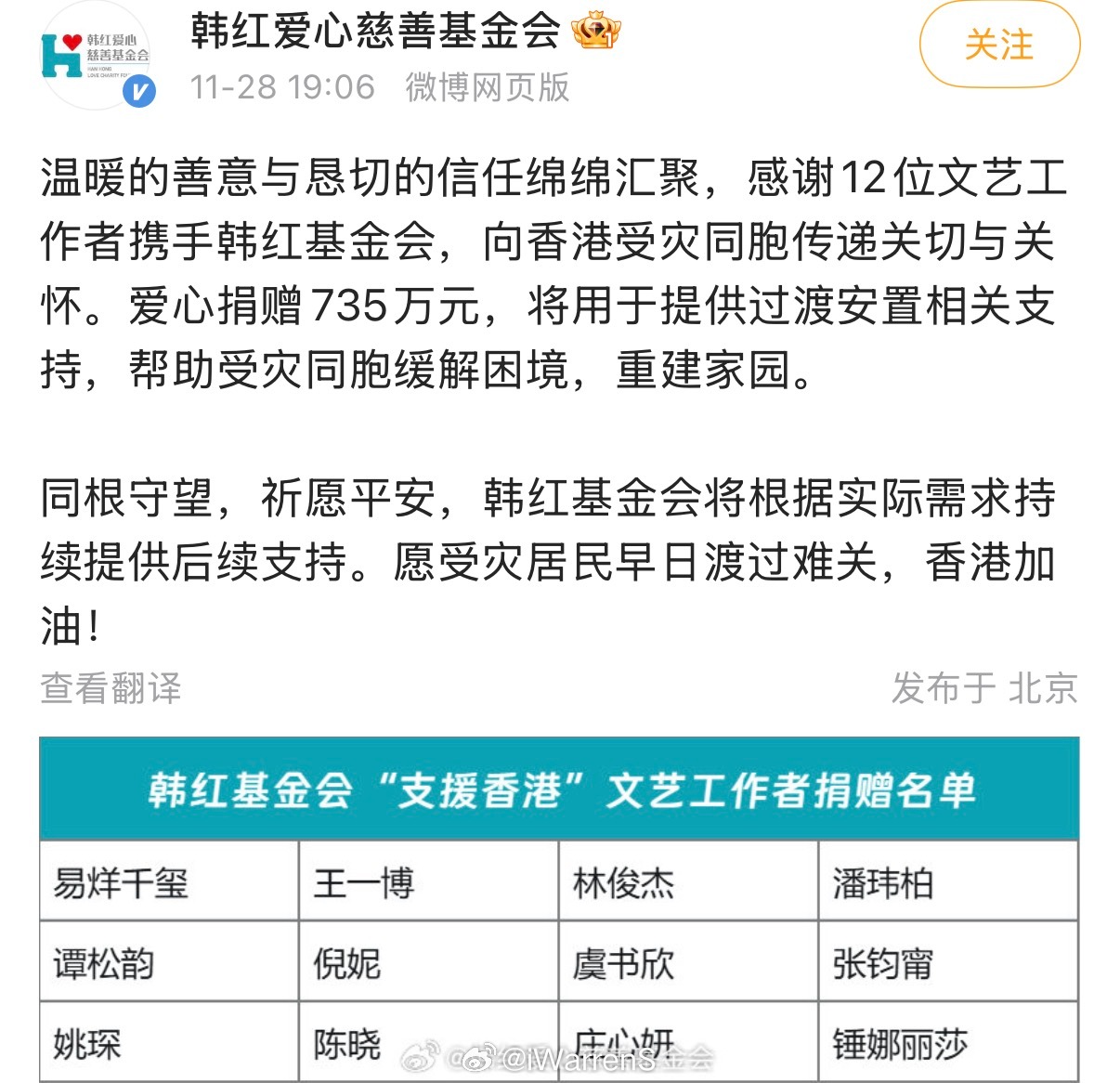 檀健次为香港捐赠100万元了,愿平安!明星捐款