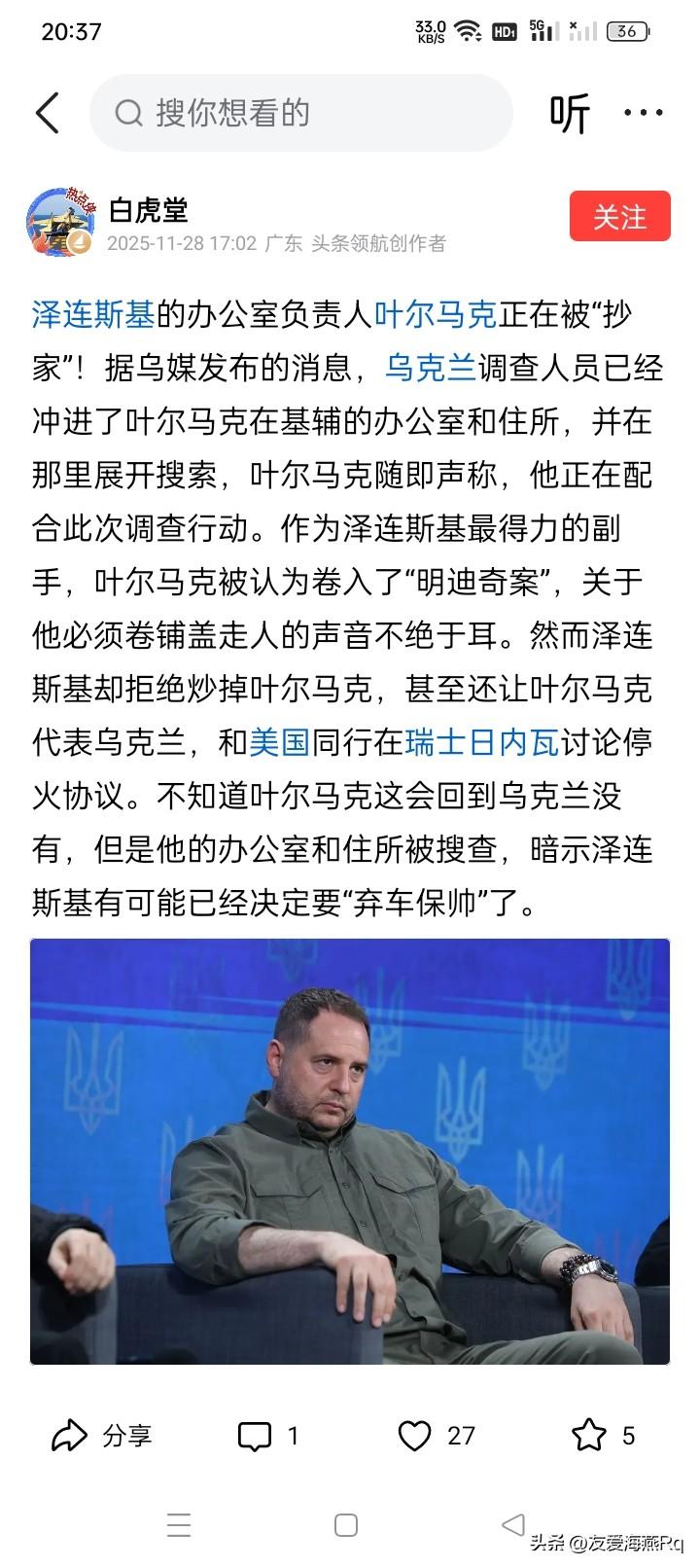 恰恰是人人平等! 据网络上有消息说,乌克兰反贪局和检察官办公室一行10人,闯进乌克兰总统办公室主任叶尔马克的办公室和住处,采取措施进行搜查。 对于乌克兰反贪机构搜查乌克兰总统泽连斯基的最主要助长、现任办公室主任叶尔马克这件事情,网络上有各种各样的说法和看法,甚至是还似乎充满了各种猜测和推断,当然了,主要的是说泽连斯基政权的官员、特别是高级官员贪污腐败严重,好像危机四伏。 但是,也有人从这件事情中看到了不一样的事情,那就是无论你是多么高的官员,在法律面前人人平等,只要有贪污腐败,触犯了法律的嫌疑,同样受到反贪机构的侦查和采取强制措施。因此,这样的政府机关,尽管可能存在一些贪污腐败,但仍然可以被及时清除,保持政府机关的纯洁性。