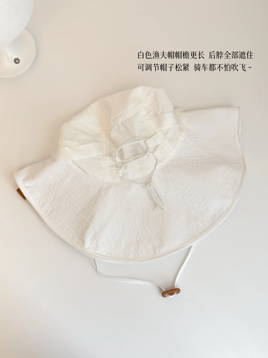 白色渔夫帽帽檐更长 后脖全部遮住