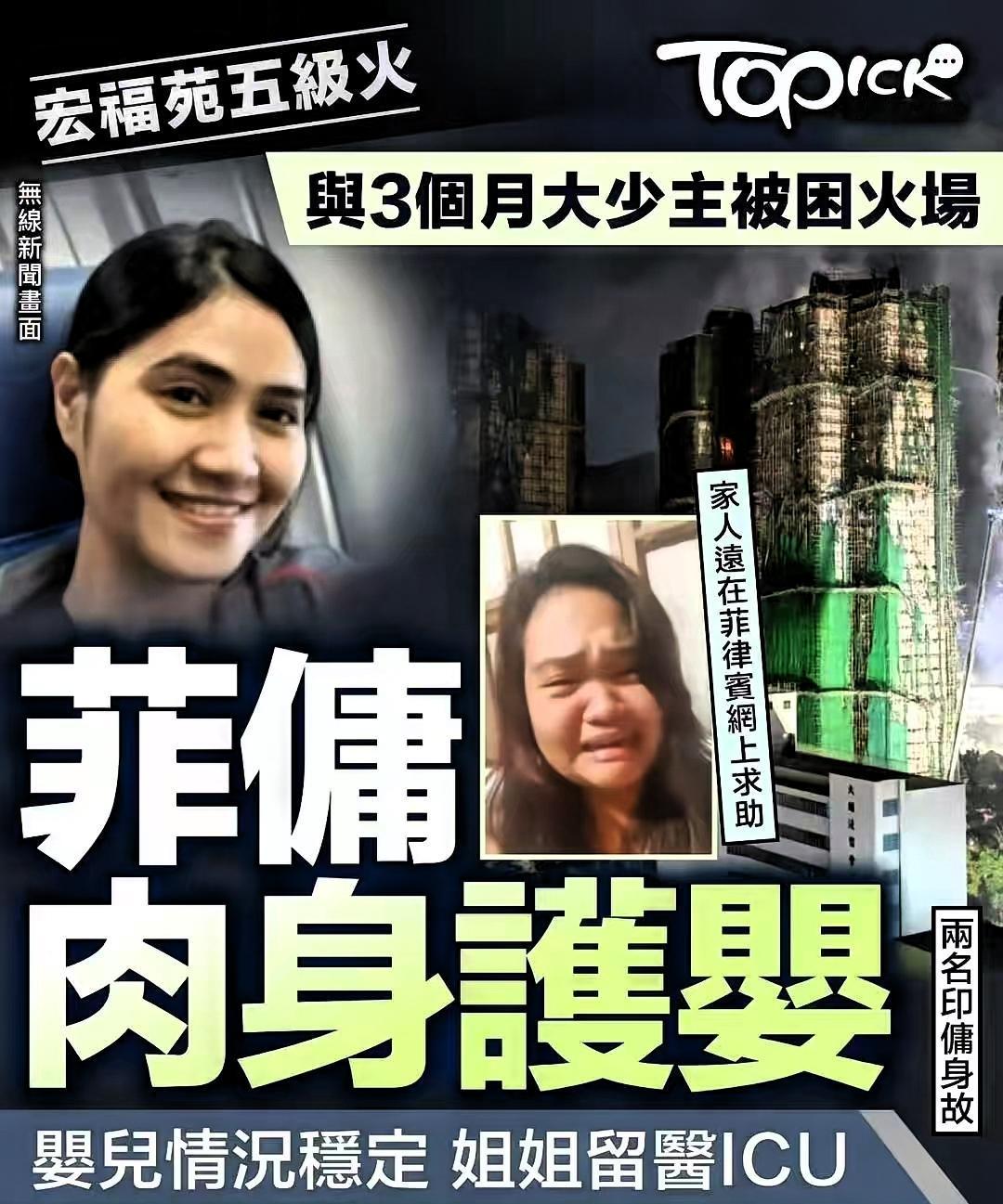 香港火灾中出现感人一幕!一名菲佣紧紧抱着雇主才3个月大的孩子,直到消防员发现并成功施救。 孩子被救出后,经检查身体状况稳定,仅受到轻微惊吓。而这位菲佣因在火灾中保护孩子,身体受到不小创伤,目前仍在ICU深切部接受治疗,后续还需进一步观察和救治。远在国外的雇主得知情况后,因无法及时赶回,只能通过网络寻求帮助,同时不断表达对菲佣的感激与担忧。 雇佣关系常被看作是基于报酬的合作,不少人觉得做好本职工作已是尽责。但这位菲佣的选择,让我们看到了超越契约的善意。在危险来临之际,她没有优先考虑自身安危,而是本能地守护着身边脆弱的小生命,这份反应无关刻意,更源于内心的善良与责任感。 生活中,我们总在寻找真情的痕迹,其实它往往藏在这些平凡人的日常选择里。这位菲佣只是千万普通劳动者中的一员,却用实际行动诠释了什么是责任与担当,让我们感受到人与人之间最纯粹的温暖。 愿这位善良的菲佣能早日康复,也希望这样的善意能被更多人看见和珍惜。