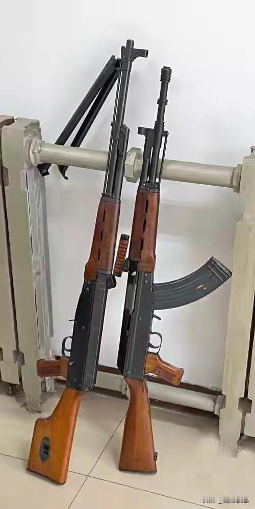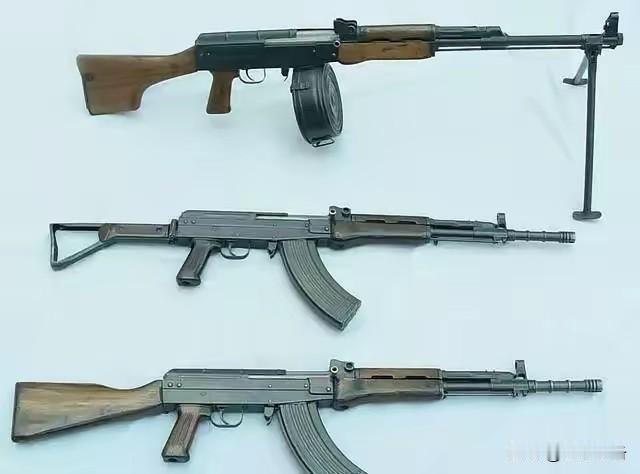 81式与82式枪族的对比,同时代背景下的相同理念,却是不同命运! 很多人对82式少有听闻,只因为设计定型比81式晚几个月,两者的命运就完全不一样。两个枪族放在一起,就可以看到一些很相似的地方。比如班用机枪都有提把,而且还都是设计经验不足提把向前,不同的是提把与枪身的连接处81式在左边,82式的则在右边,从实用角度来看,82式的右置提把更实用一些,提起来的时候弹鼓外翻以减小与身体摩擦。 两者对比最明显的莫过于相比56式的枪身机匣框都做了延长,可以推断82式的枪机组件和81式一样都做了加长设计。这样的设计能让整个枪机组件在往复运动中更平稳,但这样的设计也带来一个问题,就是导致枪支整体不够紧凑。这也是81式步枪枪管不是很长,整枪却显得很长的原因。两者相似的细节地方很多,除了甲方提出的要求外,另一个原因就是跟我国第二代国产新步枪的发展有关。当然,这又是另一个故事了。