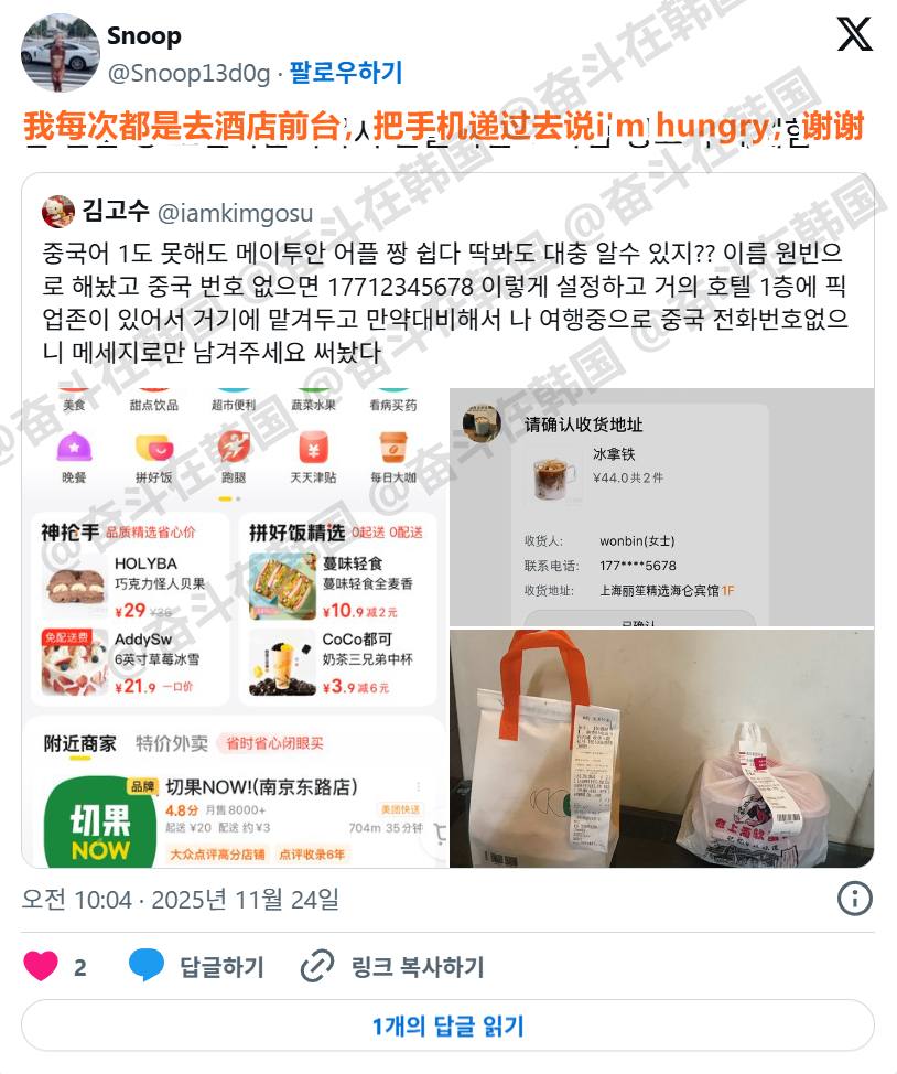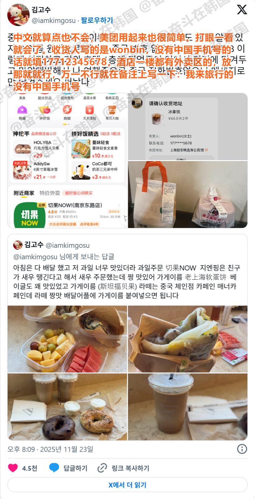 韩国人在中国点外卖吃的TIP 海外新鲜事 热点现场