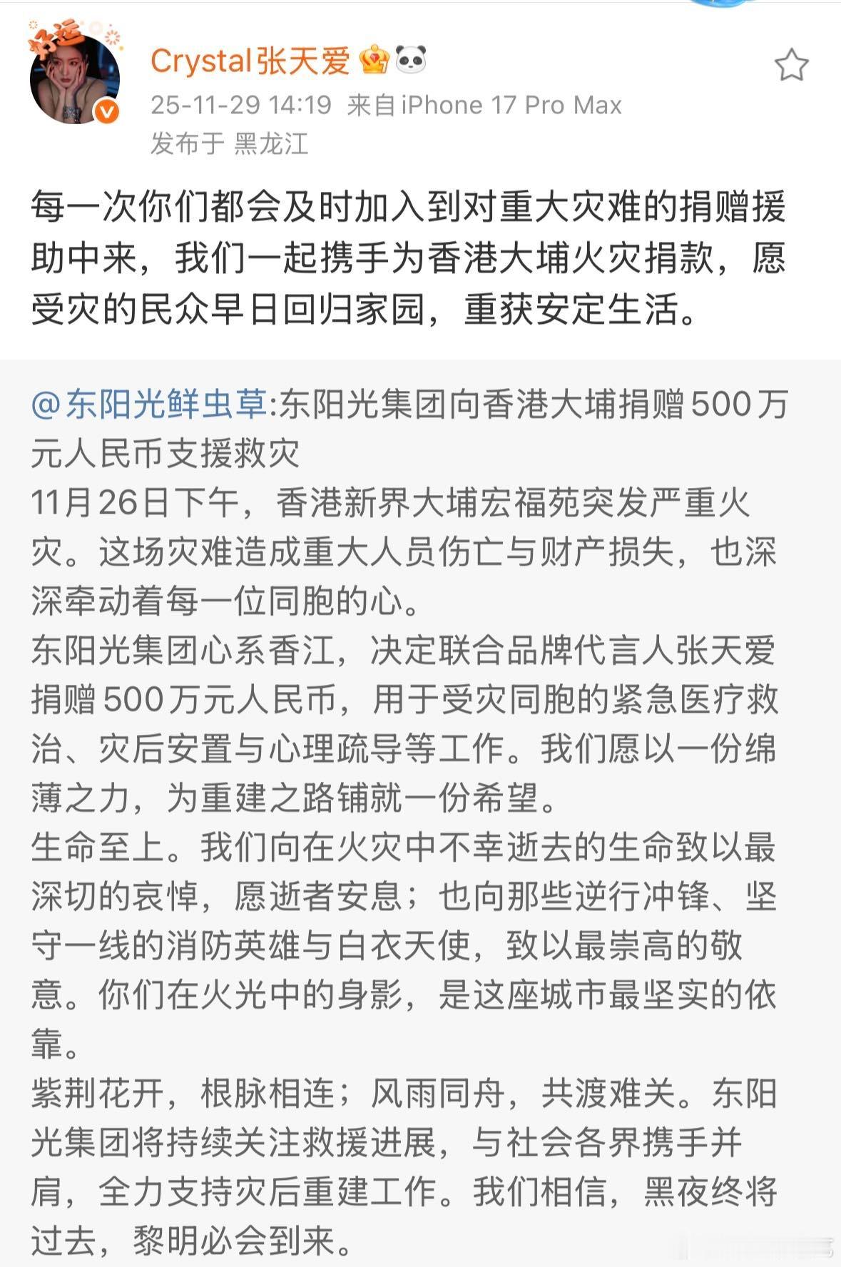 张天爱联合代言为香港捐款 张天爱联合代言为香港捐款真的是证明了姐姐有在一直关注着这件事情,张天爱联合捐款500万真的好棒张天爱联合捐款500万