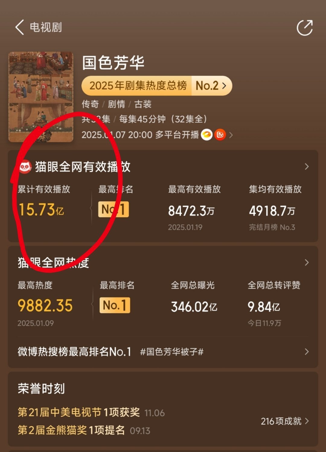 水龙吟有效播放量破17亿如果只看猫眼数据的话——❶罗云熙,肖顺尧,敖子逸主演《水龙吟》,有效播放有效播放17亿。❷杨紫,李现主演的《国色芳华》,15.73亿。
