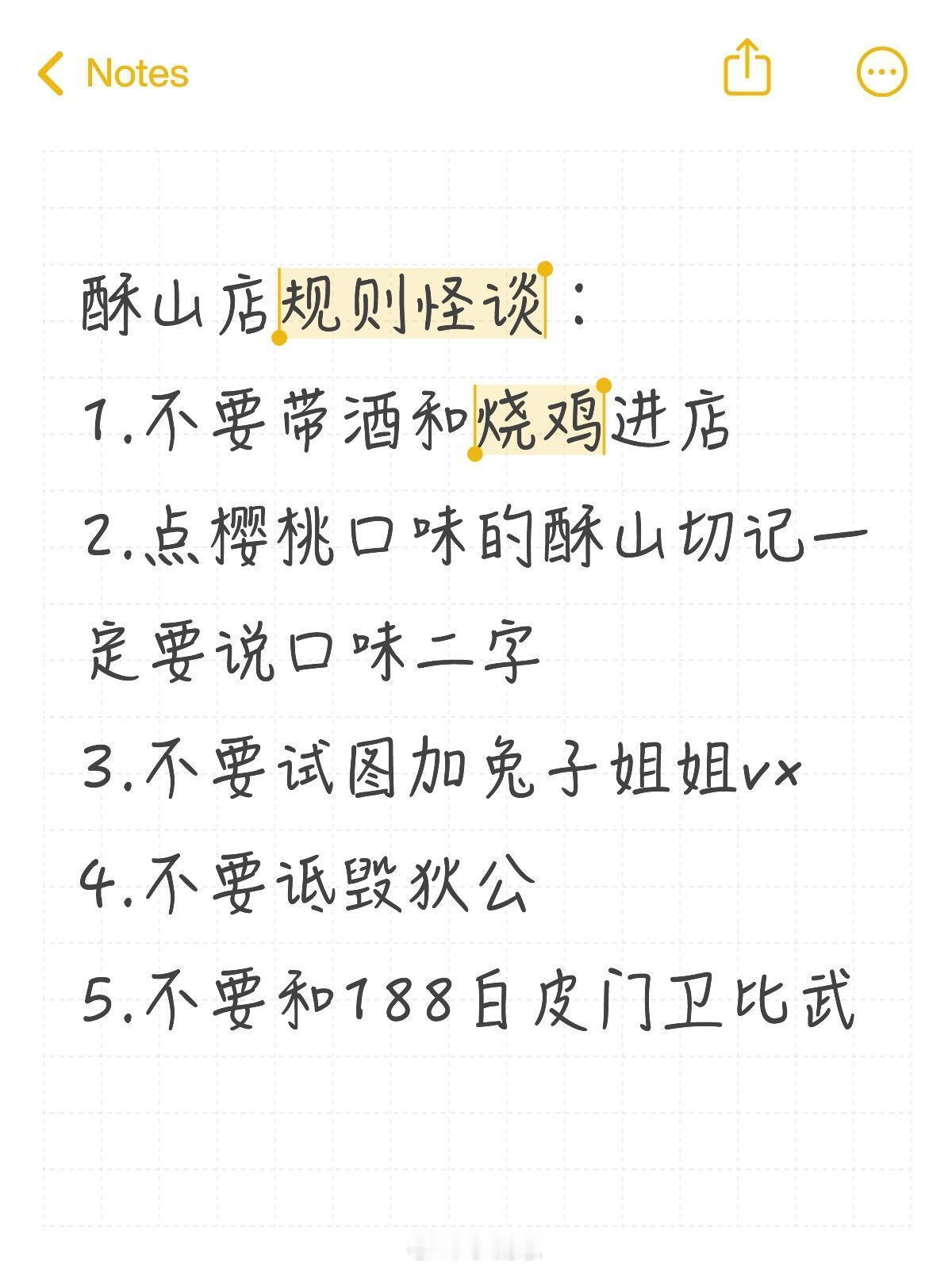 唐朝诡事录酥山店规则怪谈酥山店规则怪谈∶1.不要带酒和烧鸡进店2.点樱桃口味的酥山切记一定要说口味二字3.不要试图加兔子姐姐vx4.不要诋毁狄公5.不要和188白皮门卫比武唐朝诡事录之长安‖