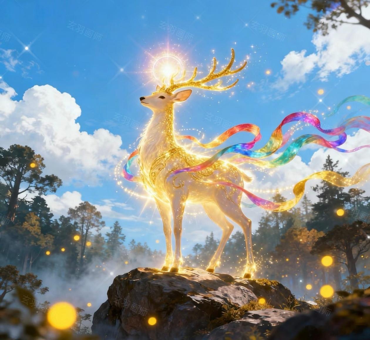 鹿影随身尘扰去,祥风拂面韵潜生。七彩神鹿有驱散黑暗,迎来新生的能力。点赞,拨开云