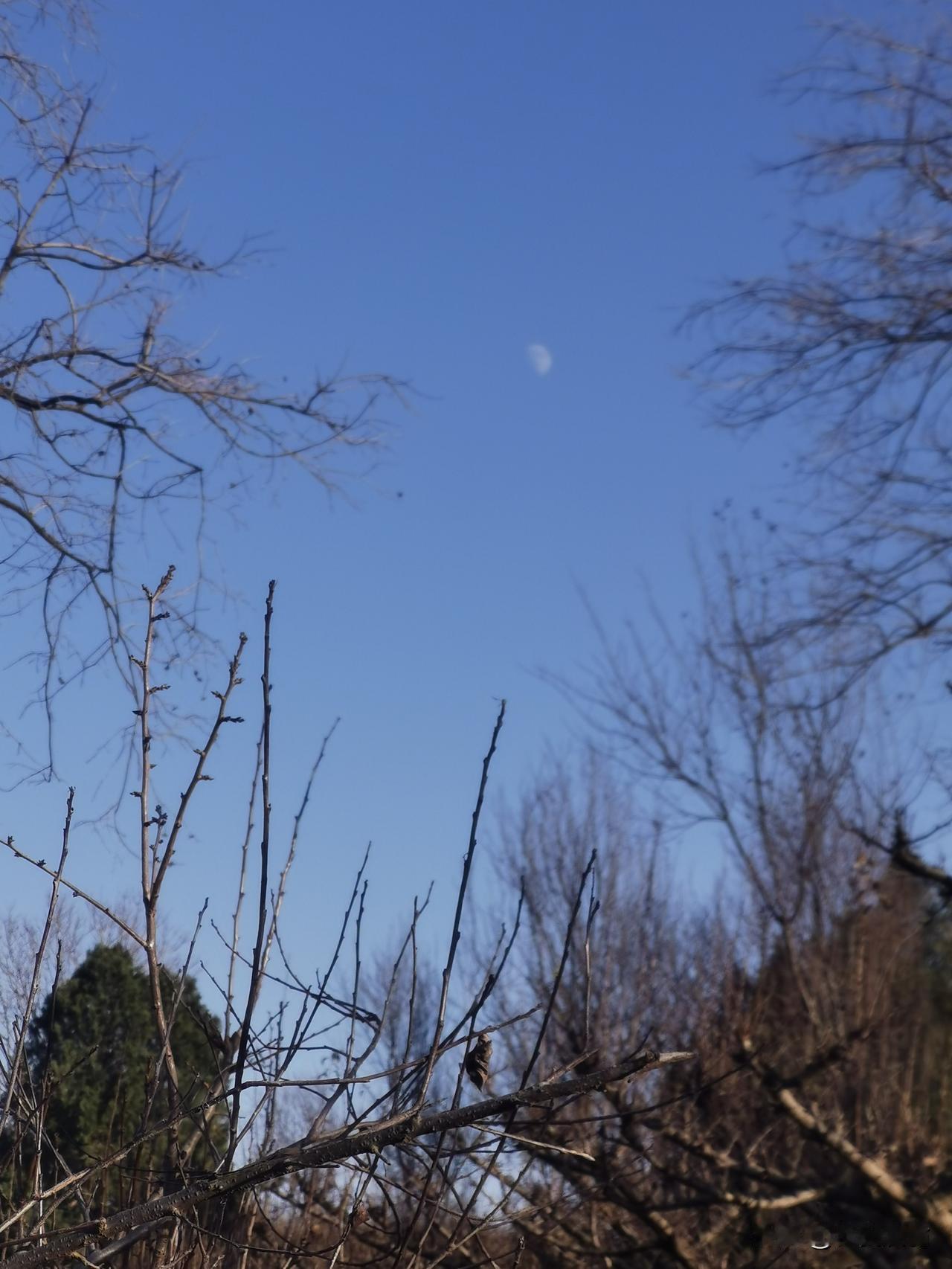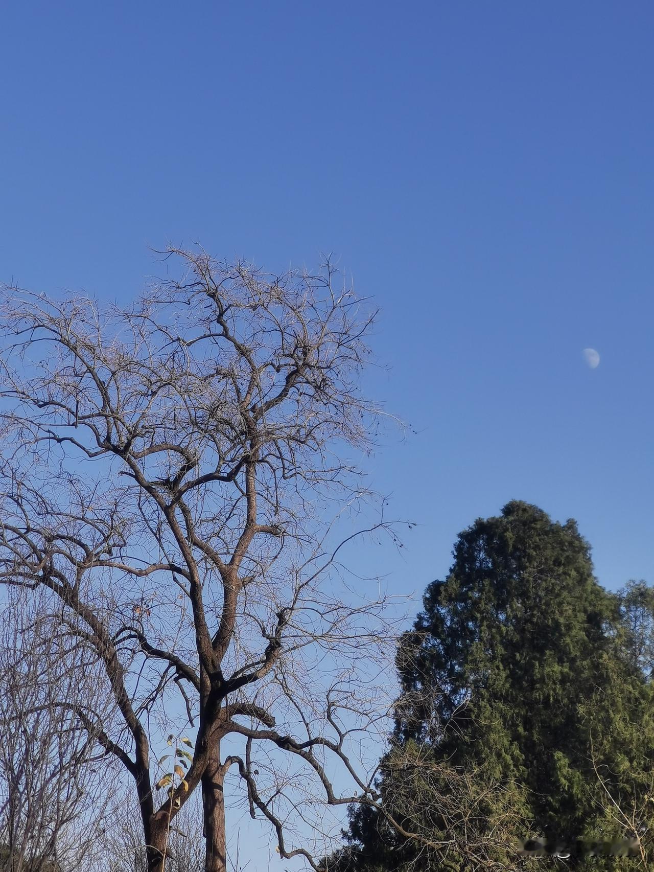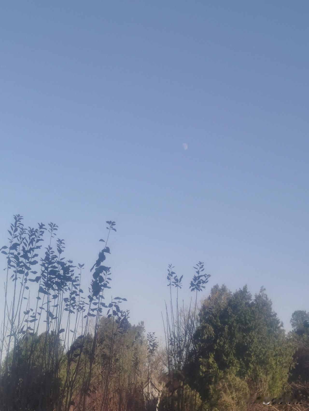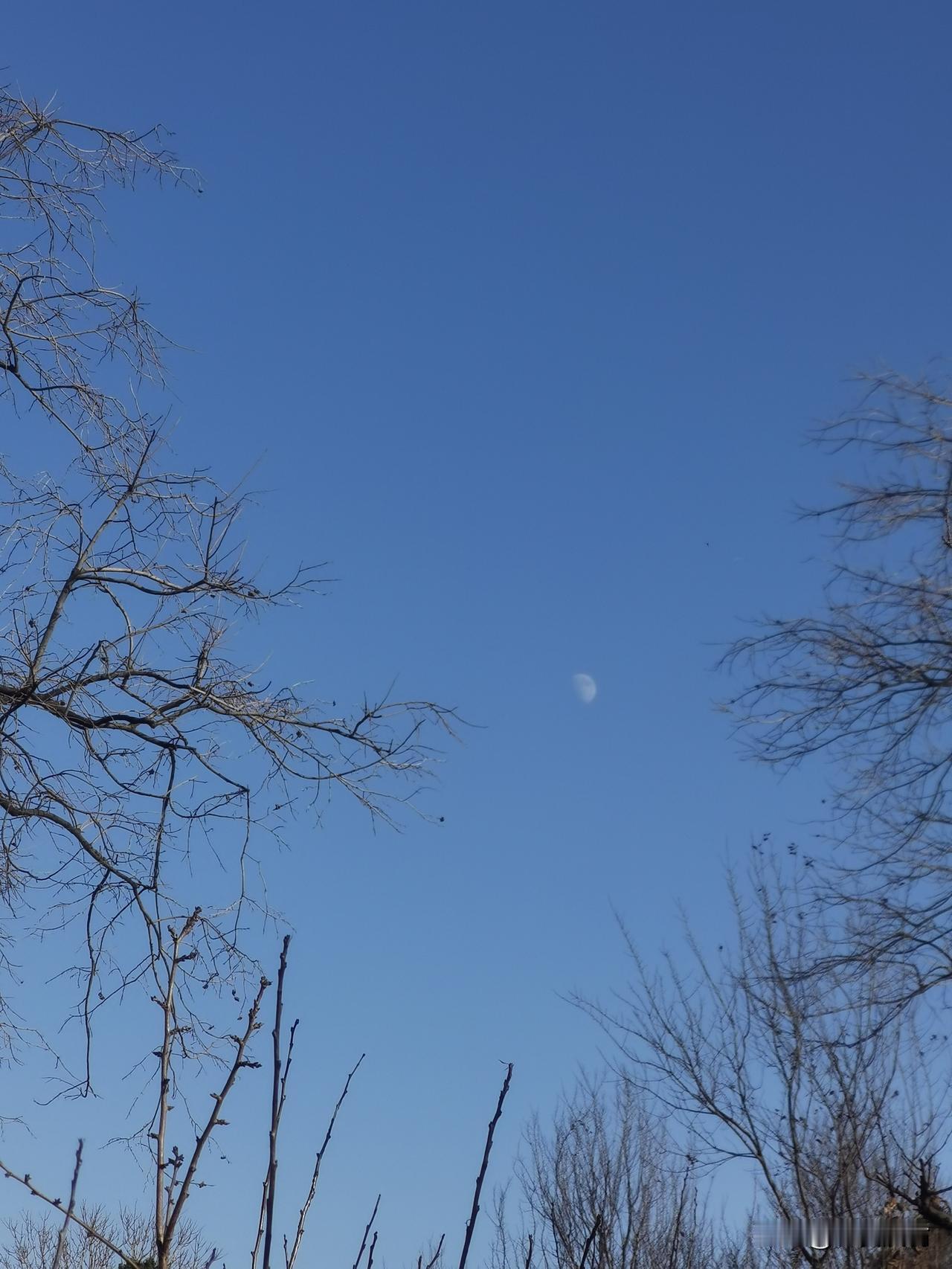 晒图笔记大赛从未发现,白天居然有月亮!今天是周日,一个天气非常晴朗的初冬。下午3点没事,就独自去村子后边的秦岭浅山玩。天空蔚蓝而澄澈,没有一丝云彩。在碧空之上,我竟惊异的发现了半轮月色,浅淡乳白,镶嵌在东边的天际,像谁不经意间画上的,随性而写意。现在才是下午3点多了,月亮这么早就赶来上班吗?于是赶忙拍下了。