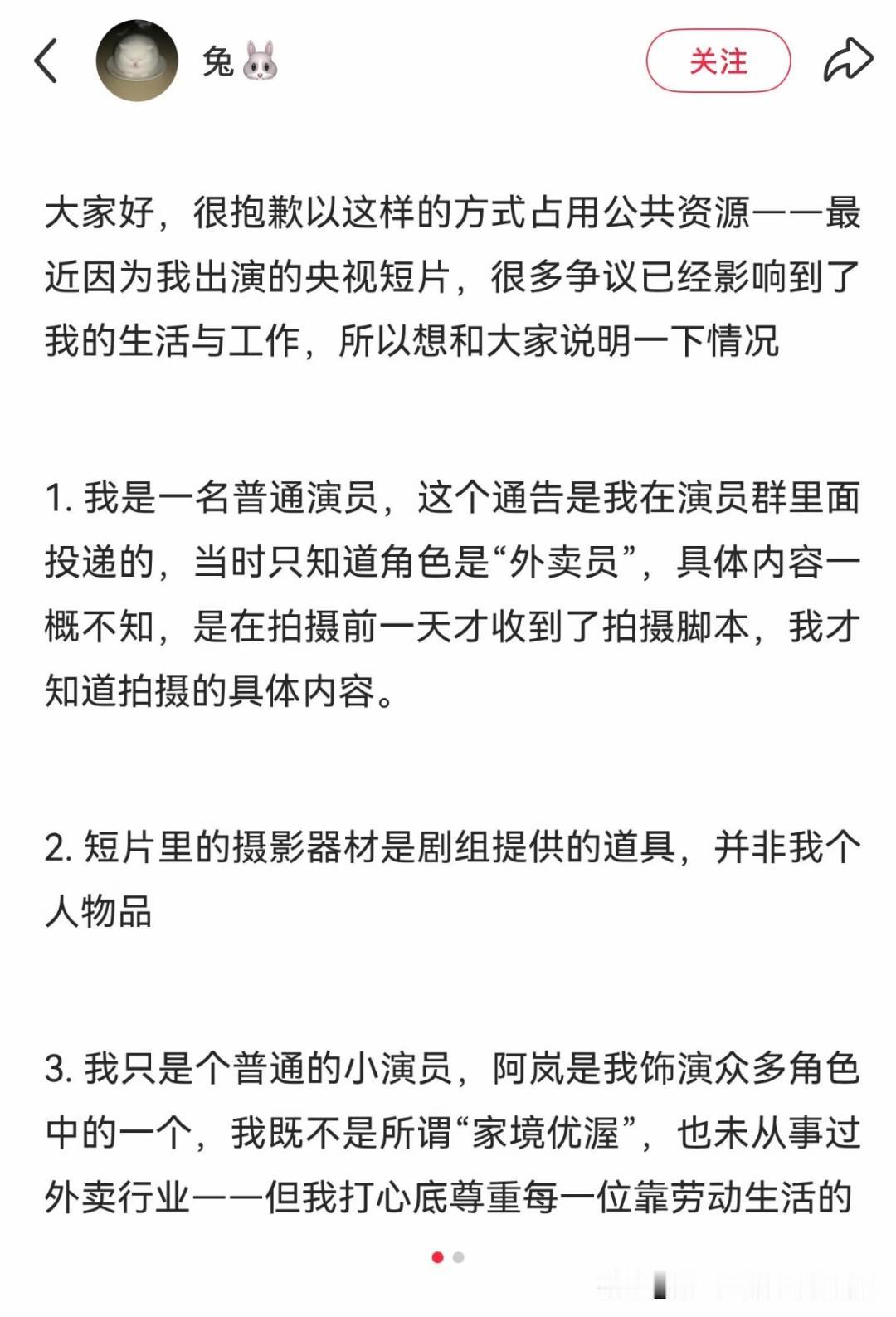 演员郑佳真倒霉,本来想得到网友一顿夸赞的,结果评论区翻车了!宣传效果没有达到,郑佳第一时间改了名,有网友留言:“演员这条路算是走到头了。” 从郑佳的道歉声明来看,她的工作就是出镜表演,并不是来体验外卖员的真实生活的,也算是来工作的。但是宣传片播出之后,反响并不是很好,郑佳第一时间也炫耀了自己的出镜表演,此举引发不少人反感。 有人要问,真实纪录片真的很难拍吗?其实不难,难在立意。再者就是宣传,如果不找知名演员,找普通人拍摄是很难达到宣传效果的,因为不认识也过于平凡而使得观众毫无兴趣观看。而一部剧能不能达到宣传效果,就要看导演和编剧以及演员的功底了,显然郑佳背了大锅。