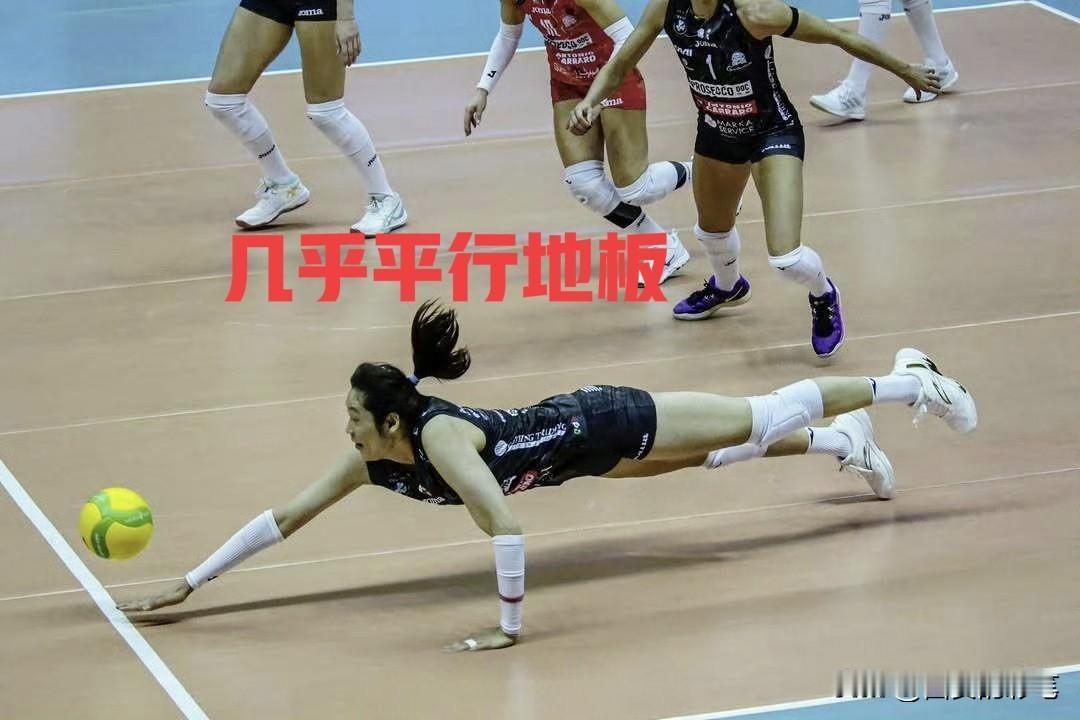 朱婷的防守好拼啊[赞] 欧冠首场比赛,朱婷除了强势的进攻,其防守更像一张密不透风的地毯。 瞧,第一图,她半跪半爬,卡位非常精准,起球质量极高,为队友创造了一次绝佳的后攻得分契机。第二图,她防守更加惊人,为了救球,整个人几乎与地板平行,难度很高。 你就说,朱婷的防守好不好,这简直是身高198的自由人。朱婷 朱婷意甲