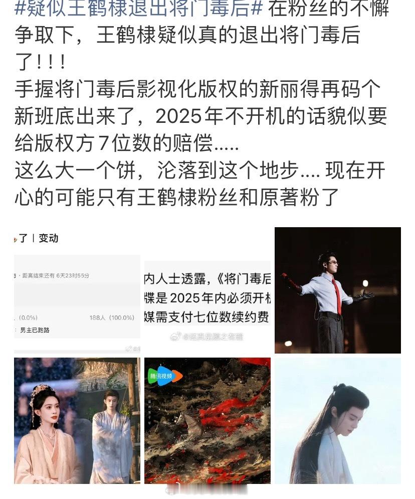 🍉🍉《将门毒后》原定男主已跑路,王鹤棣不演了嘛网友猜测是因为粉丝反对声太强烈