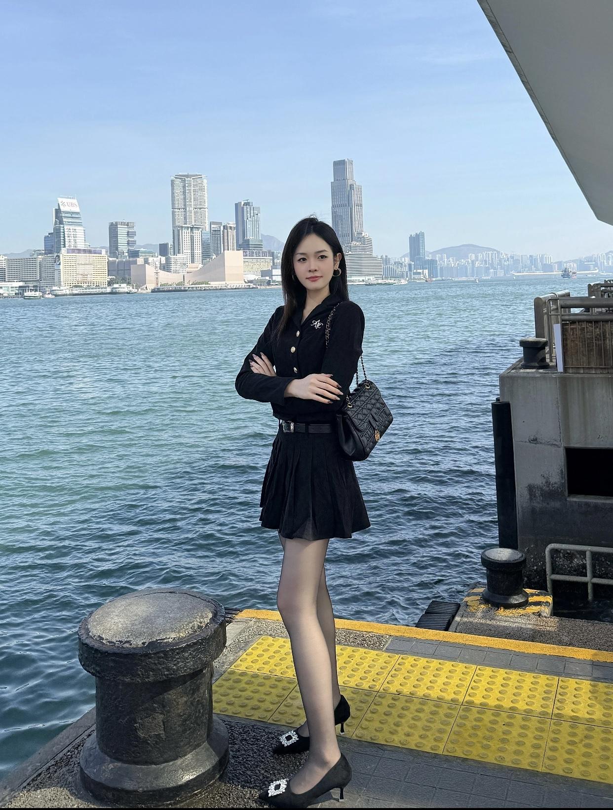 都市女郎的时尚穿搭,站在海港边,尽显优雅与自信!
