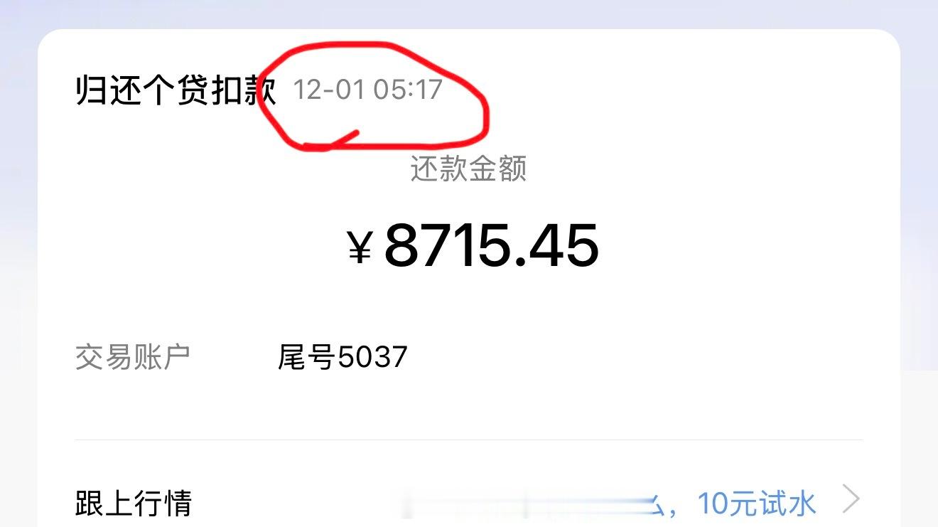 银行凌晨5点就给我扣房贷了,太积极了