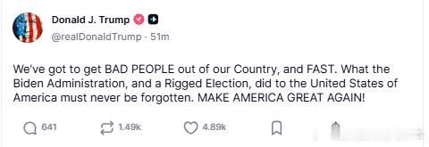 【黄金时代】川普誓言把坏人赶出美国川普:我们必须尽快把坏人赶出我们的国家。拜登政府和那场被操纵的选举对美利坚合众国造成的伤害,我们绝不能忘记。让美国再次伟大!美国和欧洲当代史川普主义研究热点现场海外新鲜事