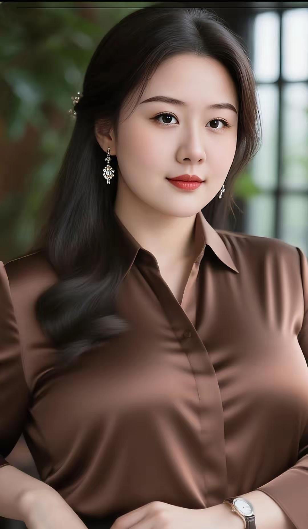 蓝光高个大眼睛棕色长直发粉色色职业套装脖颈名贵珠宝高贵高颜妆容