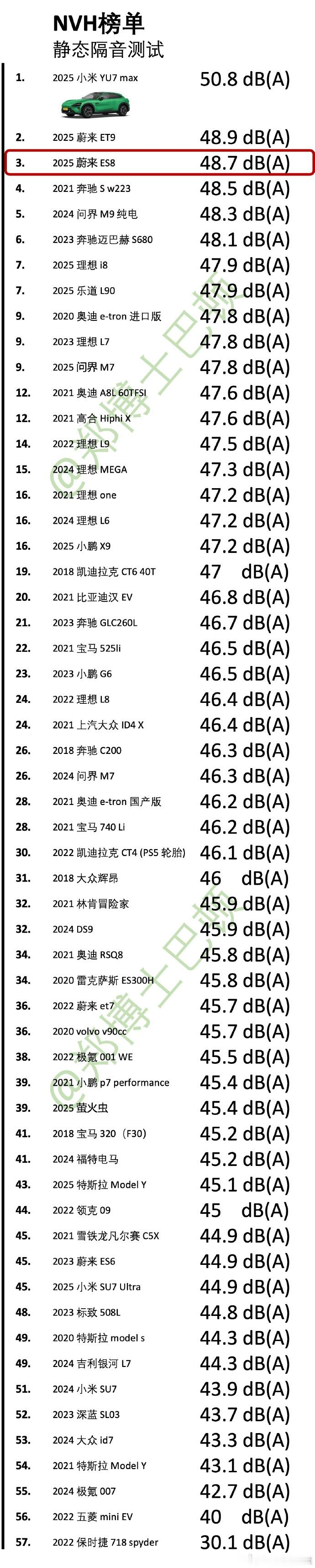 蔚来ES8的NVH测试成绩出来了~整体表现属于比较天花板的存在,跟理想i8水平接近测试来自:蔚来es8