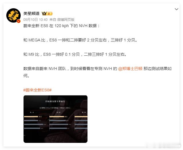 当时,宣发是怎么说的?一二三排都好!小字:光滑路面上自己测的,这好,那好!现在一到第三方常规路面实测成绩还行但和一开始宣发内容就不一样了~客观说成绩不错,但是如果用他家粉丝最喜欢说的话,这算不算鸡贼的表现呢?蔚来es8
