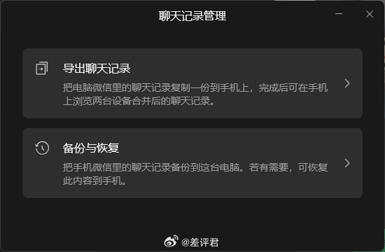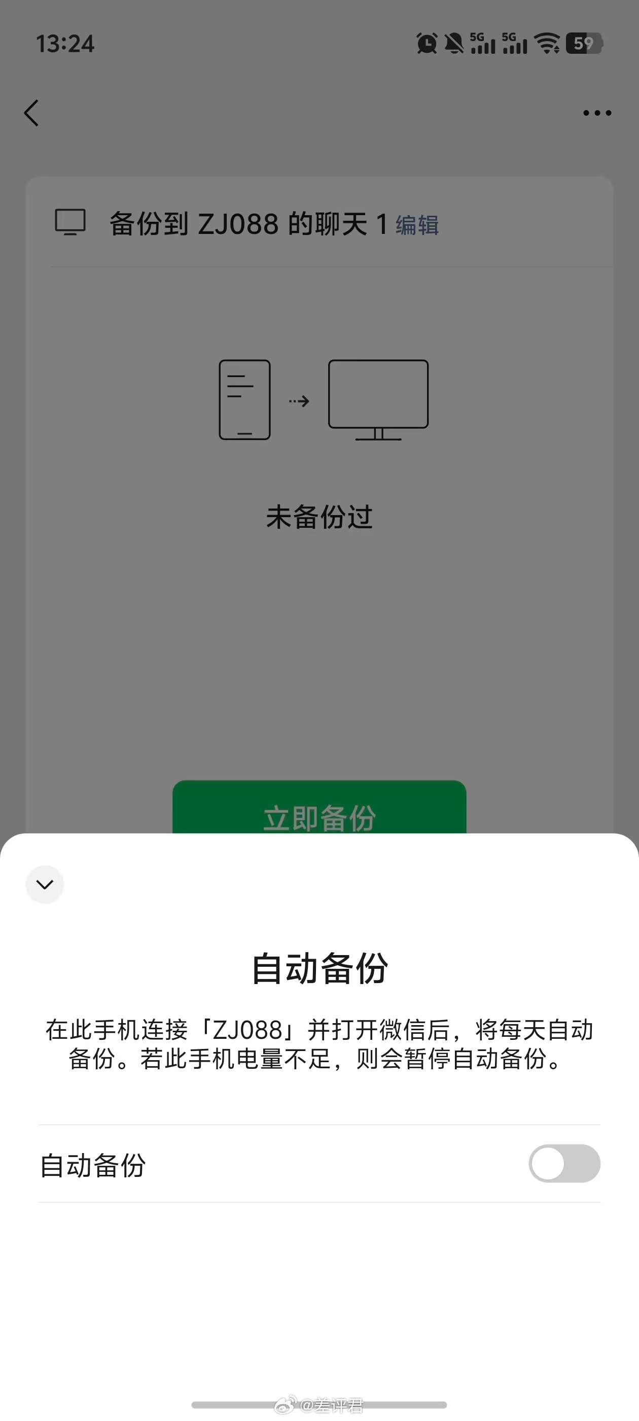 #差评说数码# 诶,微信啥时候更新的自动备份聊天记录?电脑点开备份之后手机上会自动弹出对应页面,每天自动备份。不过微信这套备份系统还是有个缺陷,备份归备份,你还是没法在PC端把这聊天记录恢复、合并,只能在手机上恢复。。。
