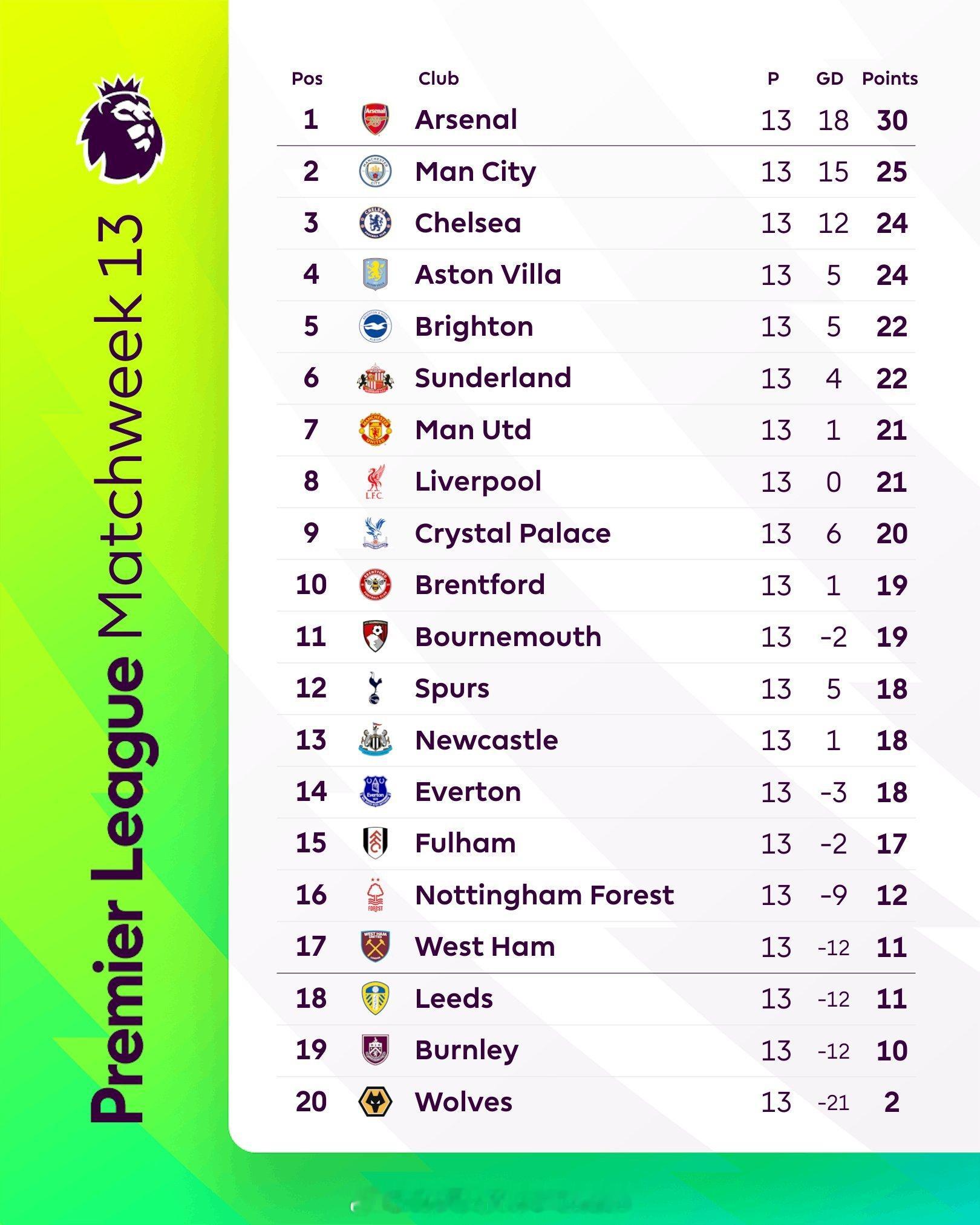 本轮英超战罢,积分榜形势,曼联积21分排名第7,净胜球优势力压积分相同的马桶