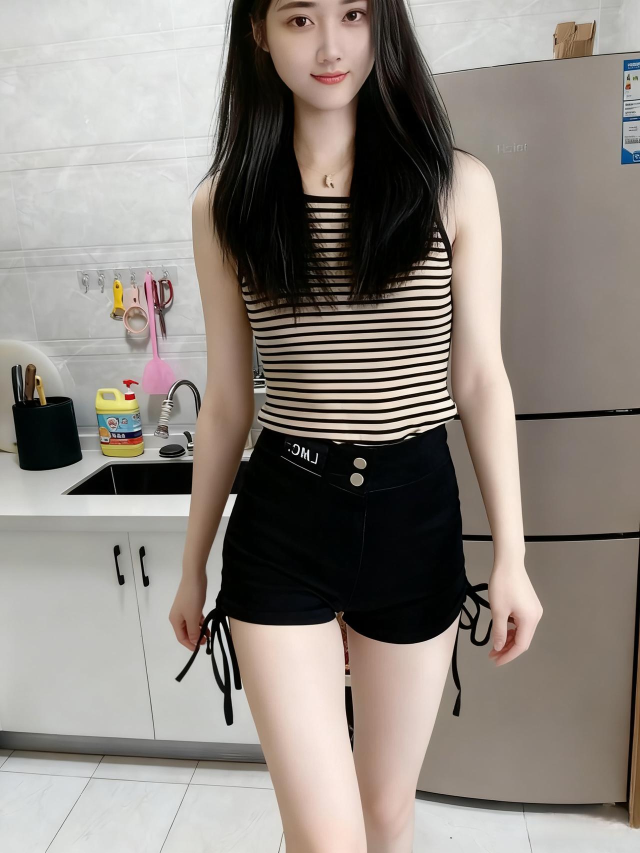 素衣短裤立厨台,风动帘帷晓色开。 一枕清欢犹在梦,心随香雾绕窗来。