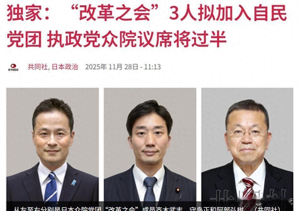日本议员突然倒戈改写游戏规则,右翼内阁强硬对华施压,内部警告全当耳边风。 日本众议院突然有三人换阵营,从一个小团体跑到了执政党那边,让自民党加维新会的席位刚超过半数。这仨人以前属于“改革之会”,现在倒戈后让执政联盟席位从230变成233,刚好过半儿。 这变化可不小,之前因为人事问题公明党退出后,高市当首相得看别人脸色。现在有了足够票数,想推预算、改法律都能自己说了算。高市立刻借官员嘴巴跟中国提要求,让中国取消赴日旅游限制。 国土交通大臣公开说酒店生意受影响,盼恢复正常,但被问及谈判进展就顾左右而言他。这明显是收到高市授意,但明明是日本自己在台湾问题上搞事,现在反倒像中国占理似的。 反对声音不少,前防卫大臣石破茂警告现在跟二战前狂热氛围像,前首相鸠山也批评。市民在首相官邸前抗议,但主流媒体根本不报导。右翼势力太嚣张,连反对声音都压下去了。 高市以为多了几十票就能让中国妥协,结果这事根本不成立。中国不可能因为日本内部政治变动就改变原则,尤其是涉及核心利益的事。 现在日本政坛越来越偏右,国内反对声音却被压制。历史教训说多少遍,人家当没听见。东京觉得占了上风就要对中国发号施令,这想法太天真了。 高市和她的人太得意忘形,忘了原则问题中国不会让步。国内警告全当耳边风,还以为拿到了尚方宝剑,最后可能碰一鼻子灰。