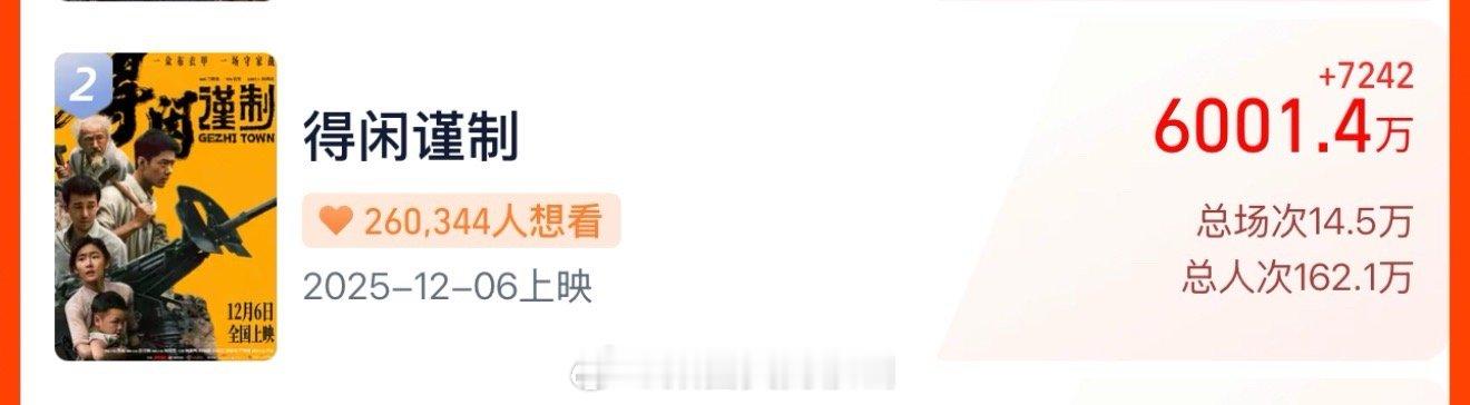影片《得闲谨制》预售总票房已突破6000万!太猛了 得闲谨制预售票房破6000万