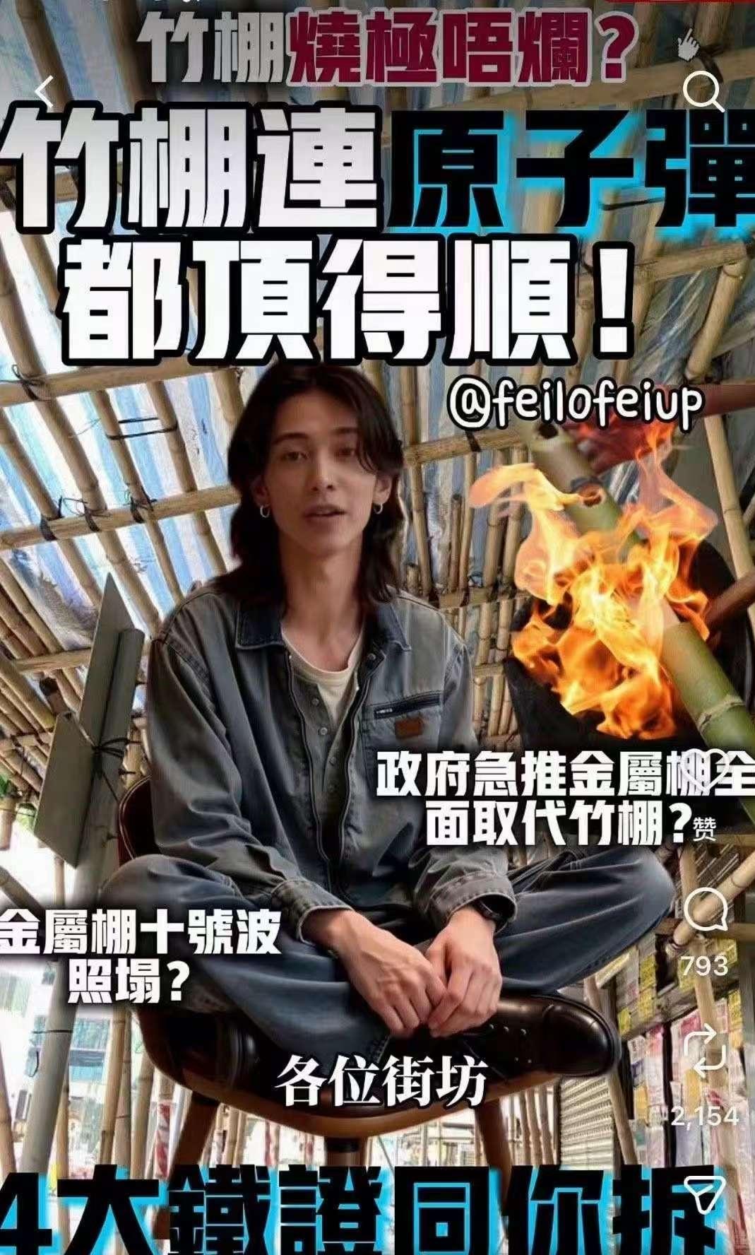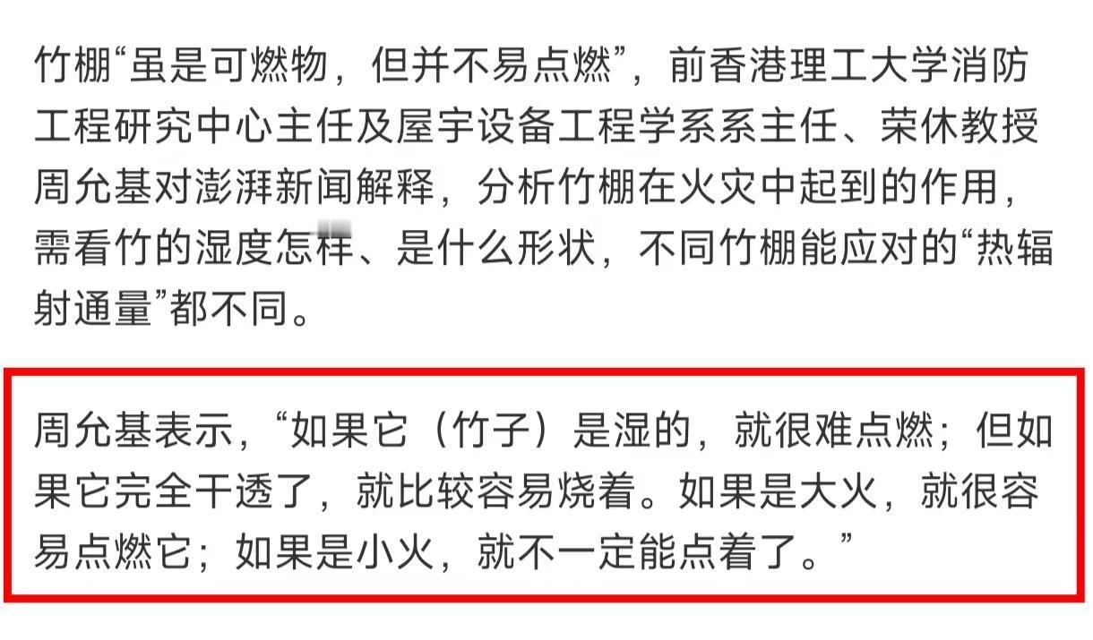 香港竹棚架之争让我想起了宋明两朝的女人裹脚,就算清朝一度禁止,但禁令效果却有限,清中后期,裹足反而更普遍,因为觉得那是汉民族身份的象征之一。 而香港的竹棚架像极了那时的女人裹脚,利益集团把它打造成香港的身份象征,在2017年被列入香港非物质文化遗产代表作名录,很多人就像中了邪一样拼命维护,还有人制作视频说竹子连原子弹都顶得顺(竹子连原子弹都不怕),看完视频我真是大无语。 另一方面,也不知是不是因为大陆率先禁用竹棚架,香港淘汰竹棚架改用金属棚架意味着跟在大陆后面,面子上有点过不去,所以才这么多人各种找补,就像这位周允基前主任,怎么看也是有知识的人,你看看你自己说的什么话,来来回回,像鬼打墙一样,按这位前主任的说法,报纸湿了也很难点燃,但如果干透就很容易烧着,你到底想说什么??