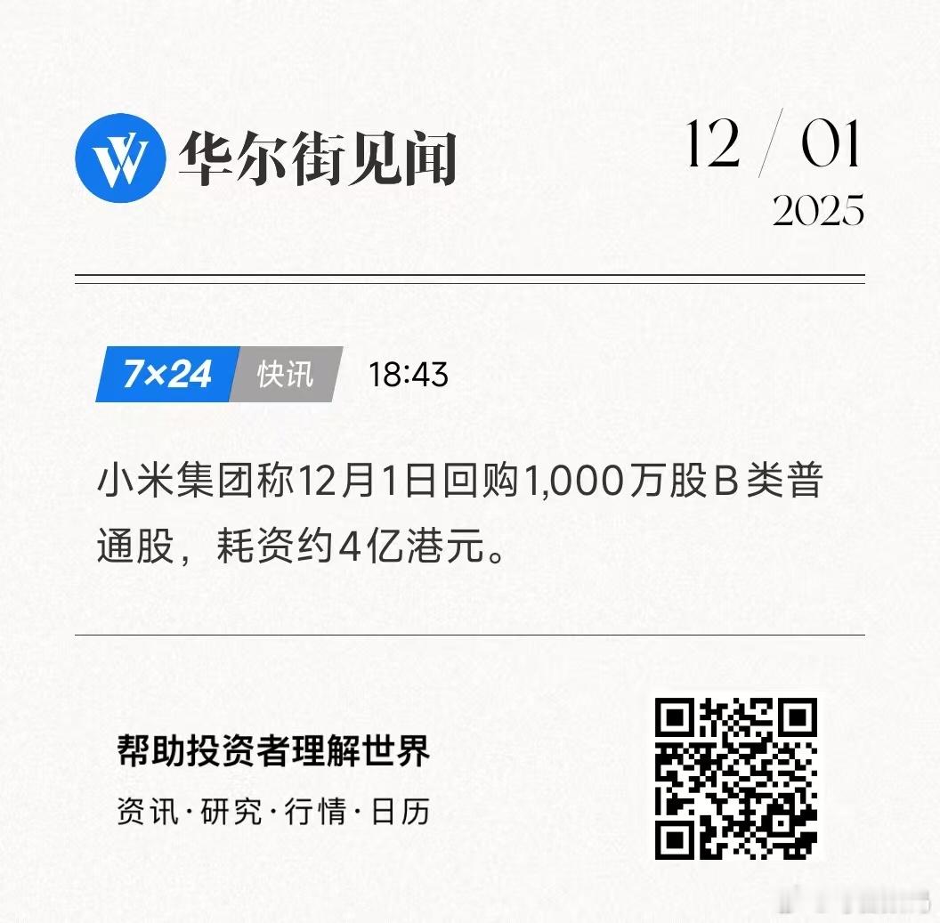 小米回购力度持续拉满,单日斥资4亿再拿下1000万股,11月以来累计19亿的投入,真是尽显与空头硬刚的决心啊。汽车业务11月交付量再超4万台,已连续三个月交付破4万,这正是回购背后的硬核底气,基本面扎实从不是空谈。空头们无视行业趋势与企业成长力逆势做空,终究难敌向上势头,静待这场空头阻击战的完胜吧
