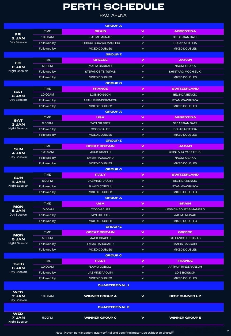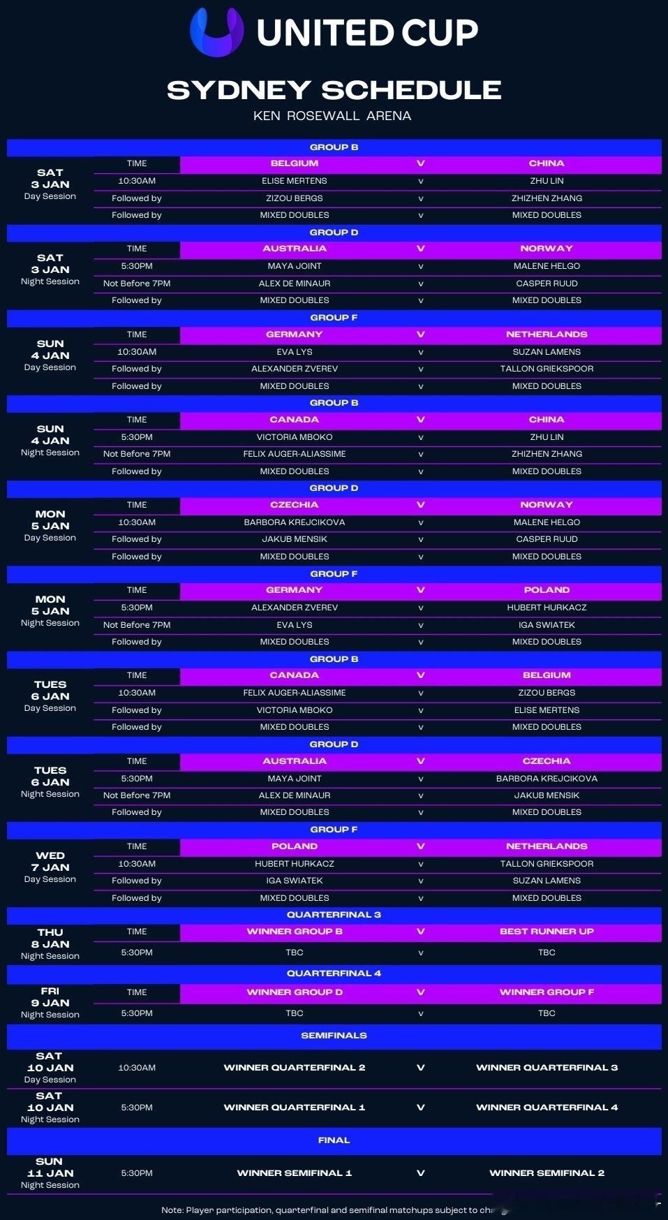 🔵2026联合杯 具体赛程及各队对阵中国队在悉尼首战迎战比利时队加油⛽网球talking大会 丨中国网球
