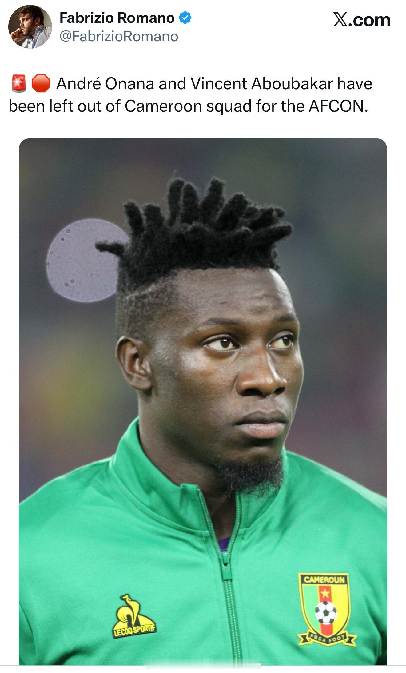 你看看…奥纳纳落选喀麦隆非洲杯国家队