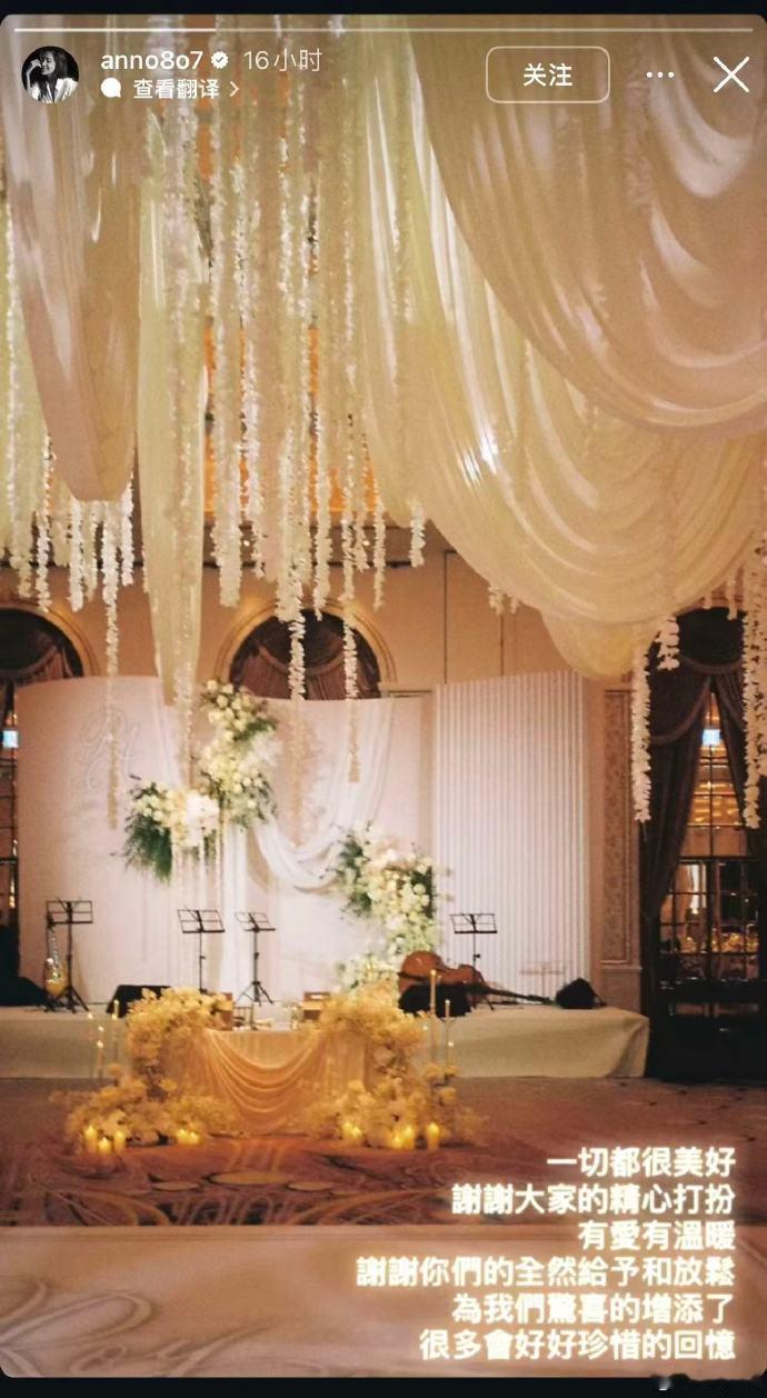 许玮甯婚礼后发文感谢宾客 许玮甯婚礼后发文:“一切都很美好,谢谢大家的精心打扮,有爱、有温暖,谢谢你们的全然给予与放松,为我们的惊喜增添了很多会好好珍惜的回忆。” 姐姐要幸福!