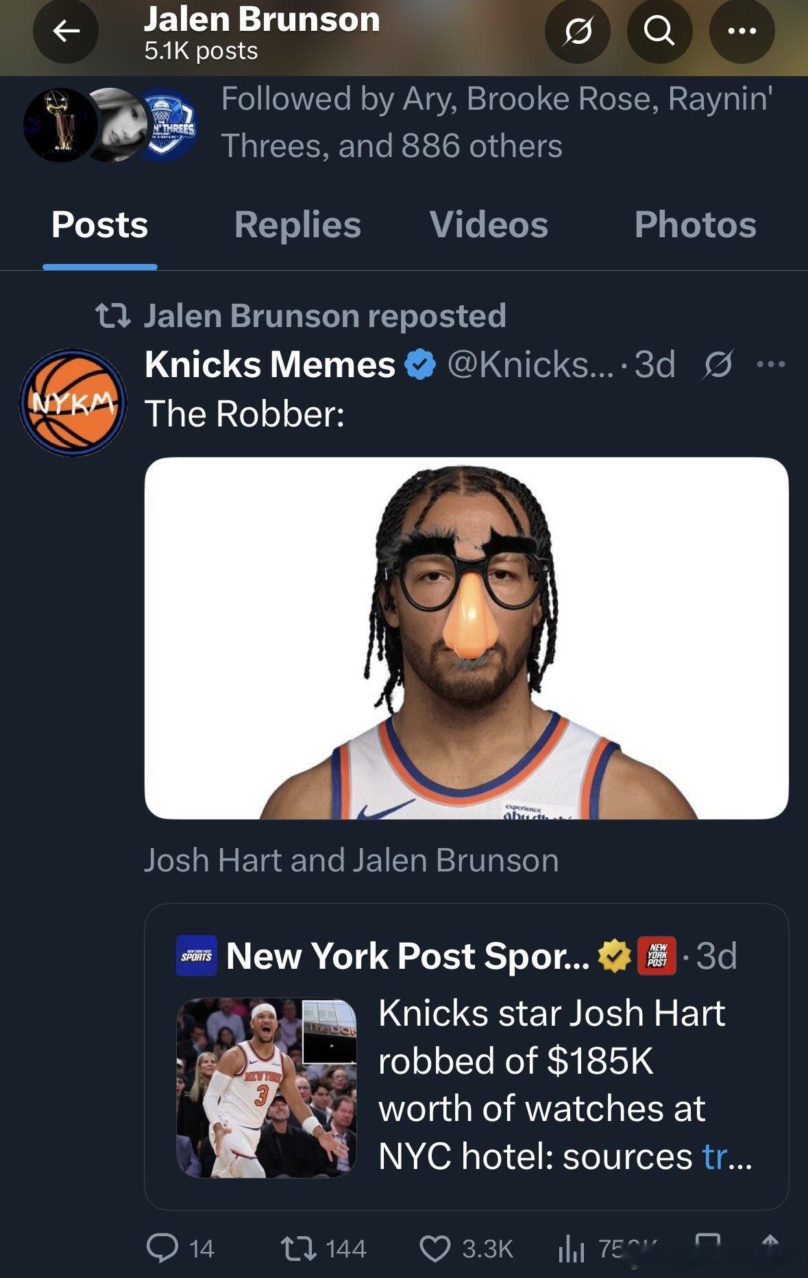 布伦森一直在和哈特开玩笑,谈及哈特手表被盗一事。昨晚在接受媒体采访前,布伦森指着自己的手表冲哈特喊道:“他们连这块也偷了吗?”东契奇布伦森当选周最佳