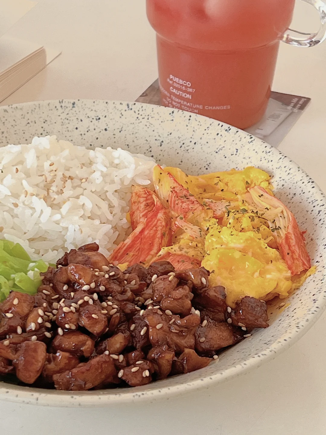 普通人的减脂餐-鸡肉生菜滑蛋盖饭🍱
