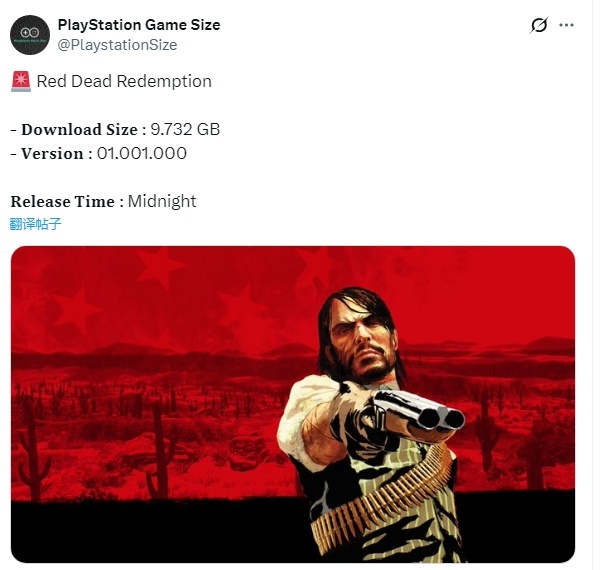 【《荒野大镖客:救赎》PS5版容量确认】R星开放世界大作《荒野大镖客:救赎》已于今日登陆PS5/XBOX/Switch 2平台,其中Switch 2版容量为11.7GB。另外,据博主PlaystationSize分享,《荒野大镖客:救赎》PS5版容量为9.732GB,版本号01.001.000。
