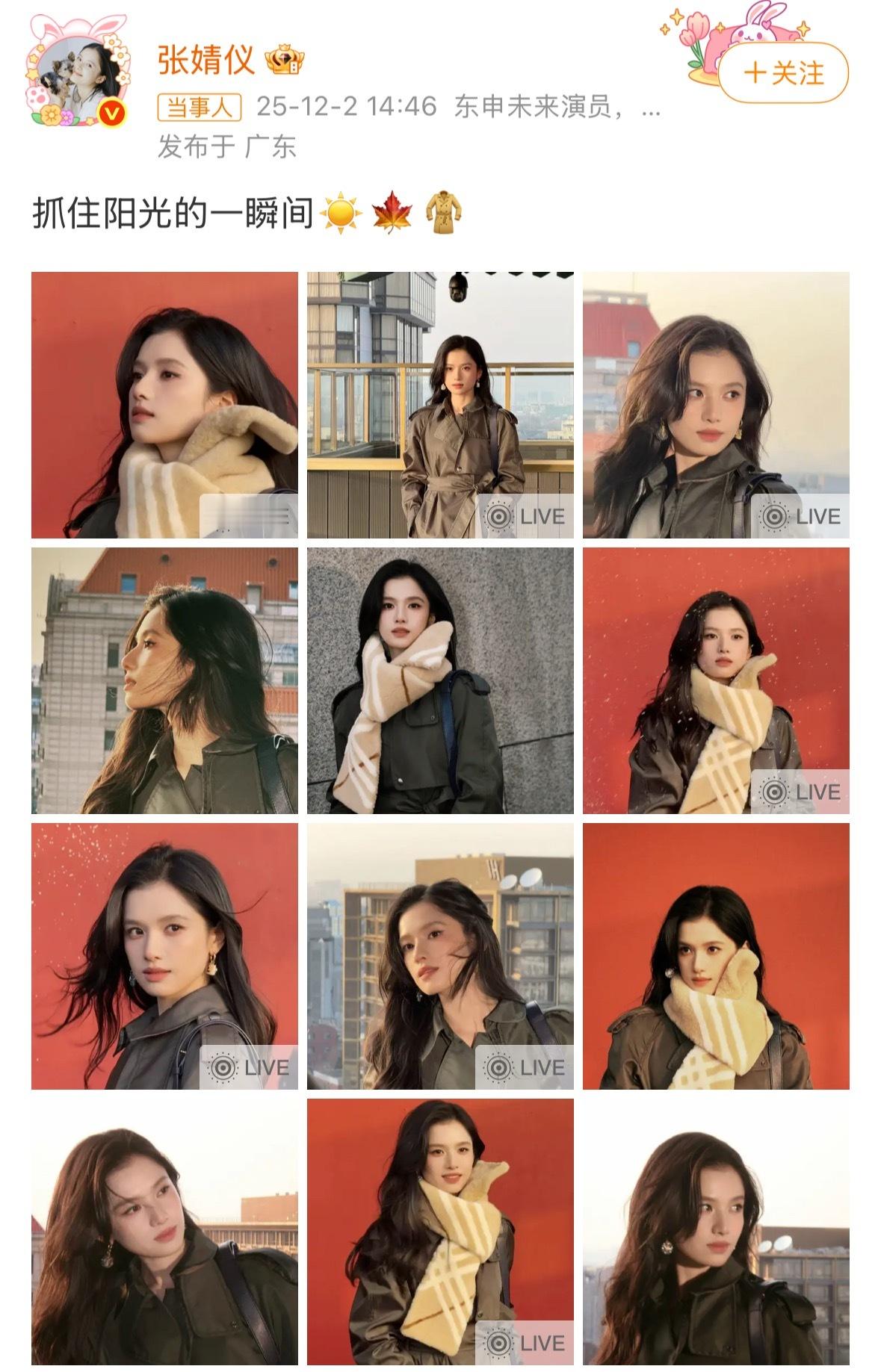 张婧仪抓住阳光的一瞬间张婧仪冬日营业照 张婧仪冬日营业照上新,围巾配大衣,冬日氛围感拉满张婧仪冬日感大片