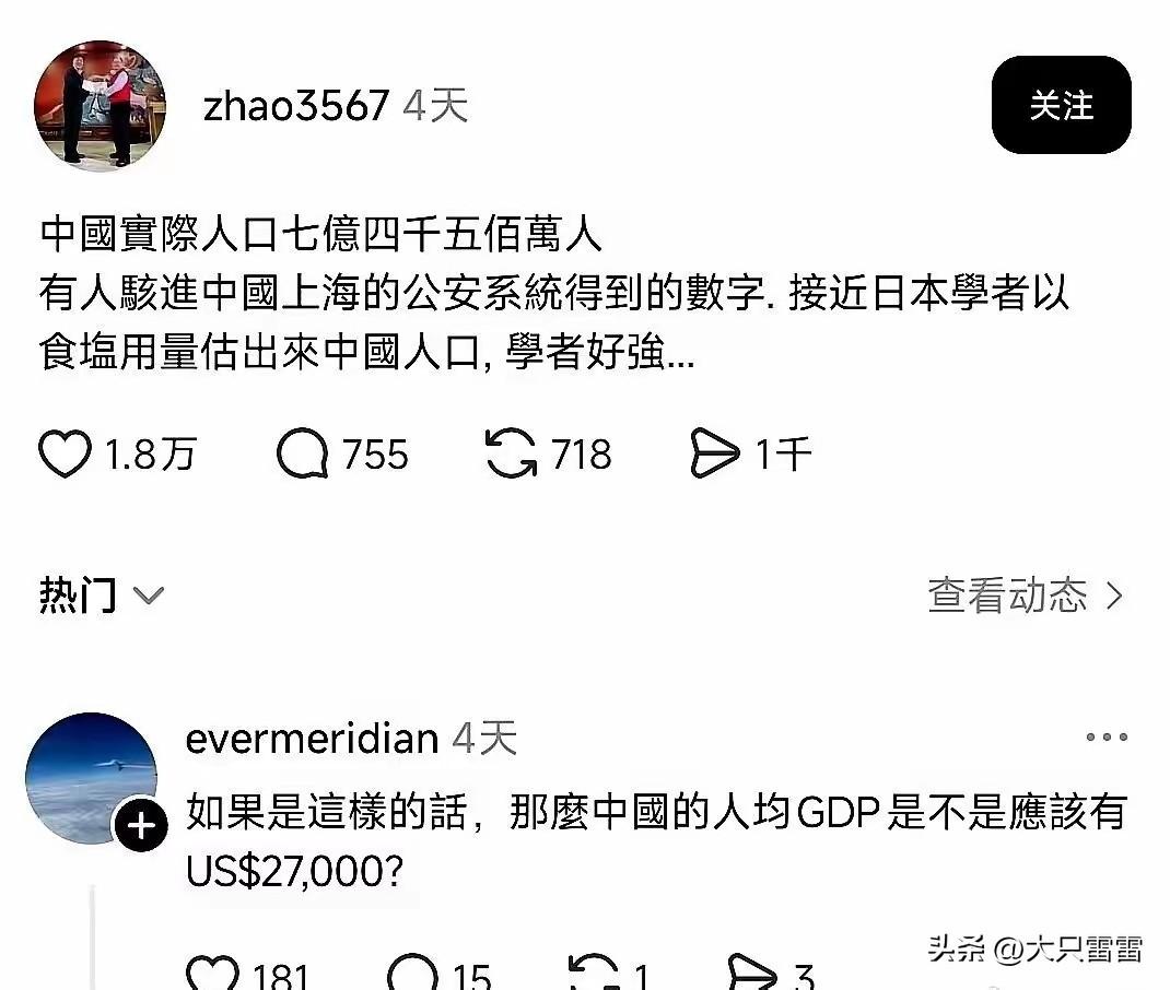 有脑子真好,可惜台蛙没有! 他认为大陆只有七亿四千万五百万人口,理由是日本学者根据食盐量估计出来的。 食盐量跟人口有直接关系?个人觉得可以颁发一个诺贝尔奖给他了! 食盐量减少,是社会上提倡低盐低糖低油的健康饮食习惯。 台蛙脑子不好使,看来回归指日可待! 绿蛙 台蛙