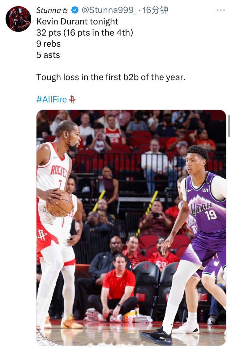 杜兰特今天的表现,你们怎么看?杜兰特火箭vs爵士休斯顿火箭
