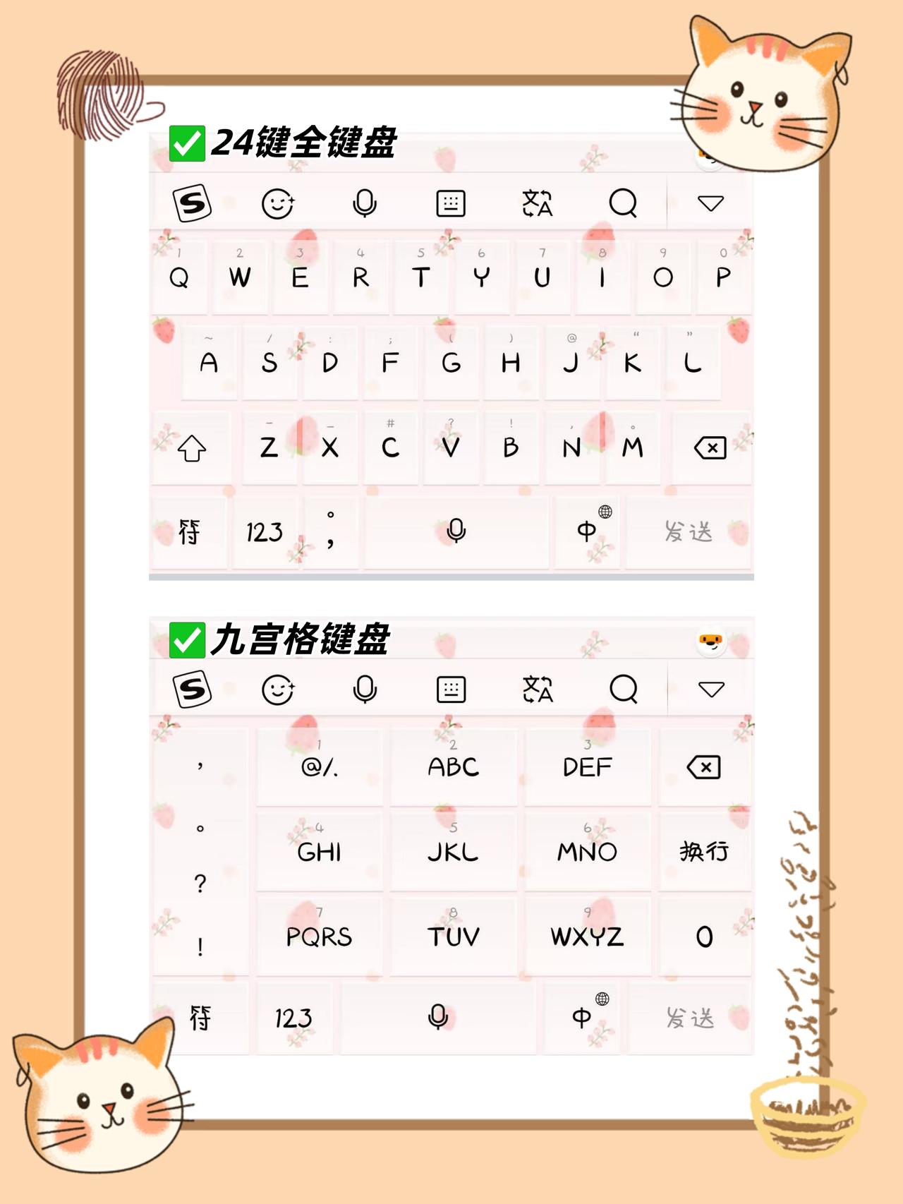你们平时打字用什么键盘? 1⃣️九宫格 2⃣️24键 3⃣️五笔键盘 4⃣️双拼键盘 我用的搜🐶九宫格键盘,觉得24键太小了,手指大容易误触😂你们呢?