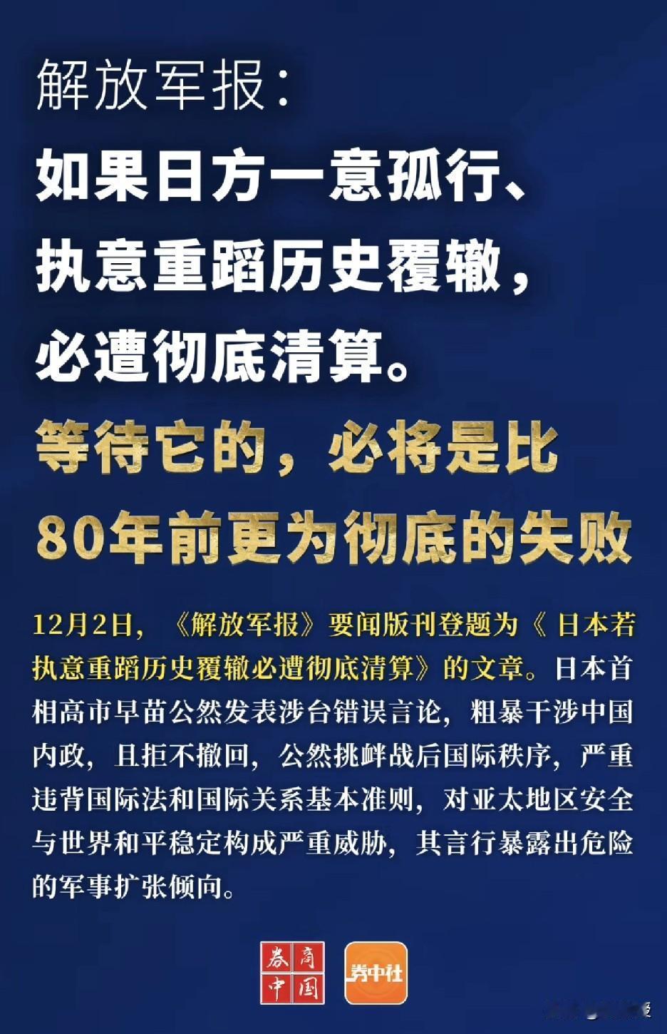 如果日方一意孤行 必遭彻底清算