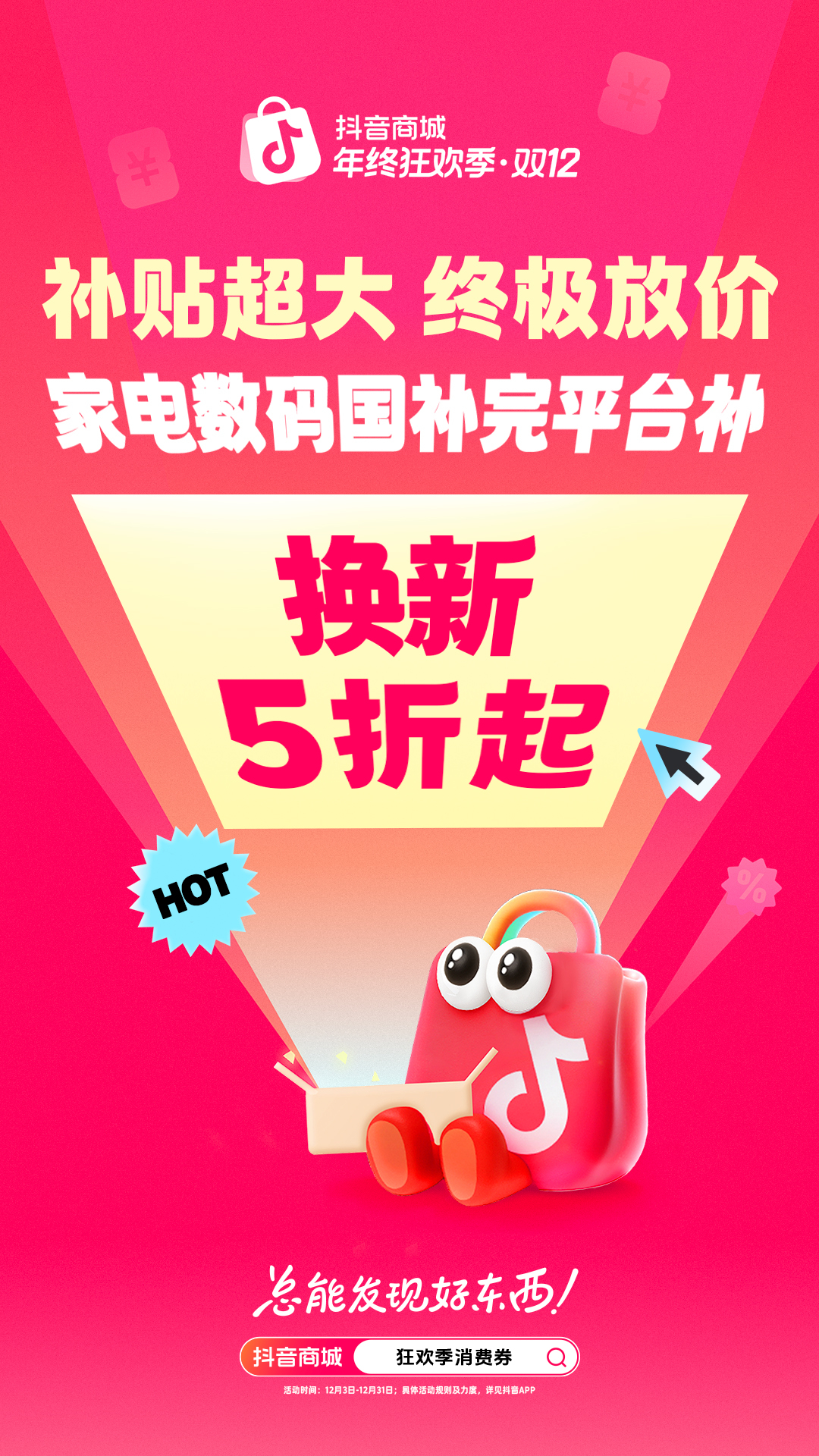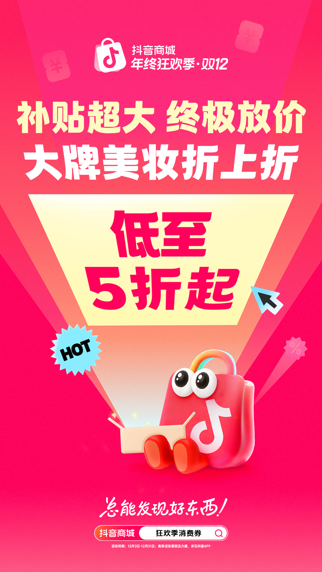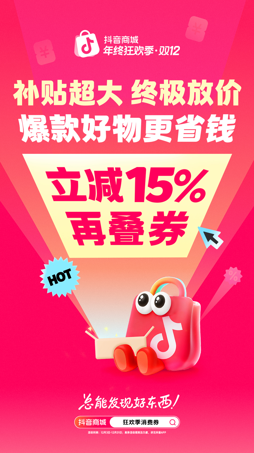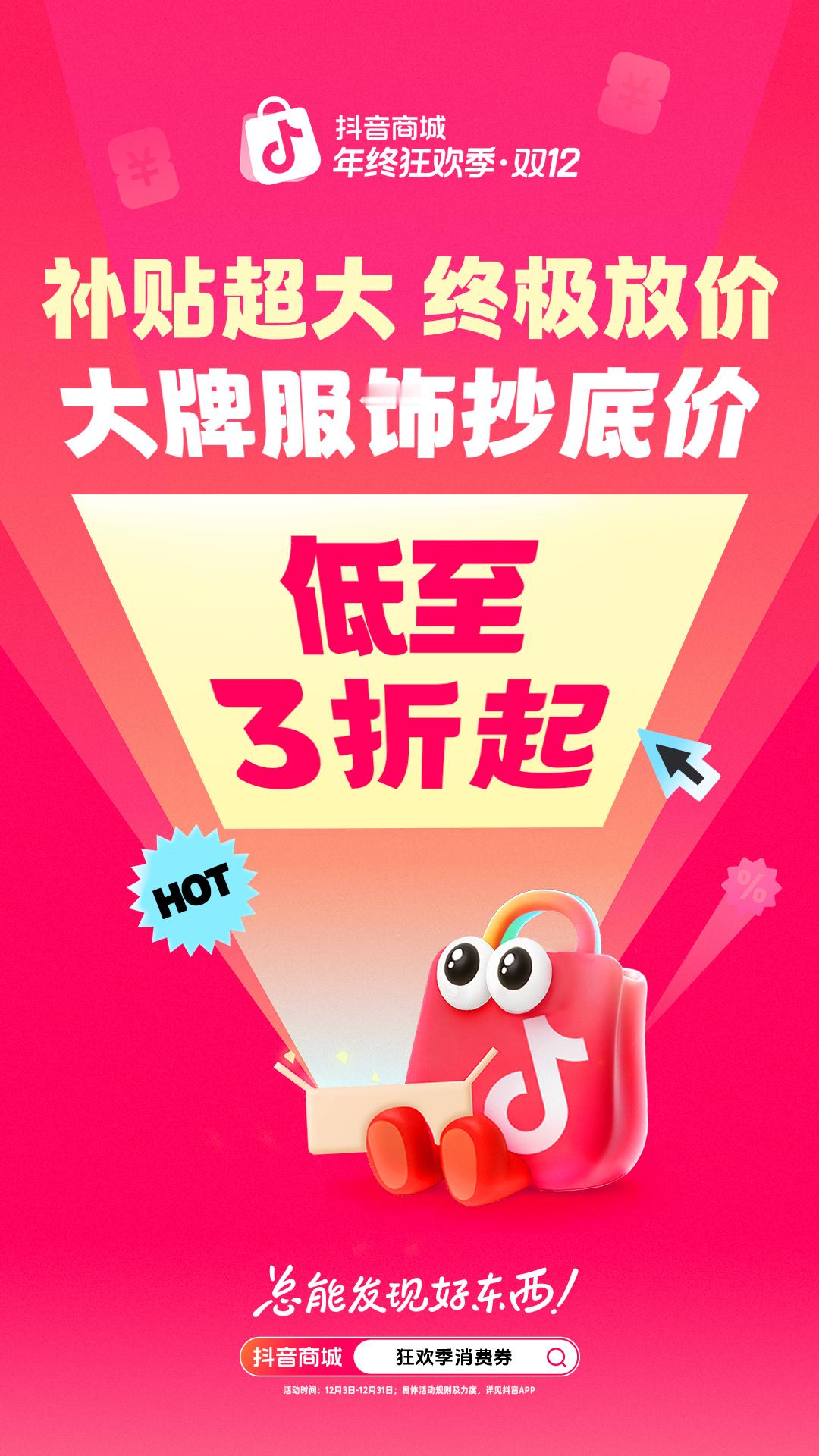 来抖音商城年终狂欢季领超大补贴 任何人错过抖音商城年终促我都会伤心OK!降温了想给家人买点大牌保暖服饰,平台加补3折起!要给家里换家电换电脑数码产品的国补完,平台补,换新5折起!大牌美妆折上折,低至5折...我很少囤货,但架不住是真优惠呀!重点来了,一定要先领券再下单!领券攻略看这里:步骤1:找到【狂欢季消费券】入口打开抖音→点击底部「商城」→顶部搜索框输入「狂欢季消费券」→点击进入活动页面,直接点“领取”一键收入囊中!步骤2:【狂欢季消费券】怎么用?选好商品点“立即购买”→结算页面会自动匹配可用券,不用手动选!狂欢季消费券,人人可领,最高省千元!手慢无,快去看看吧!