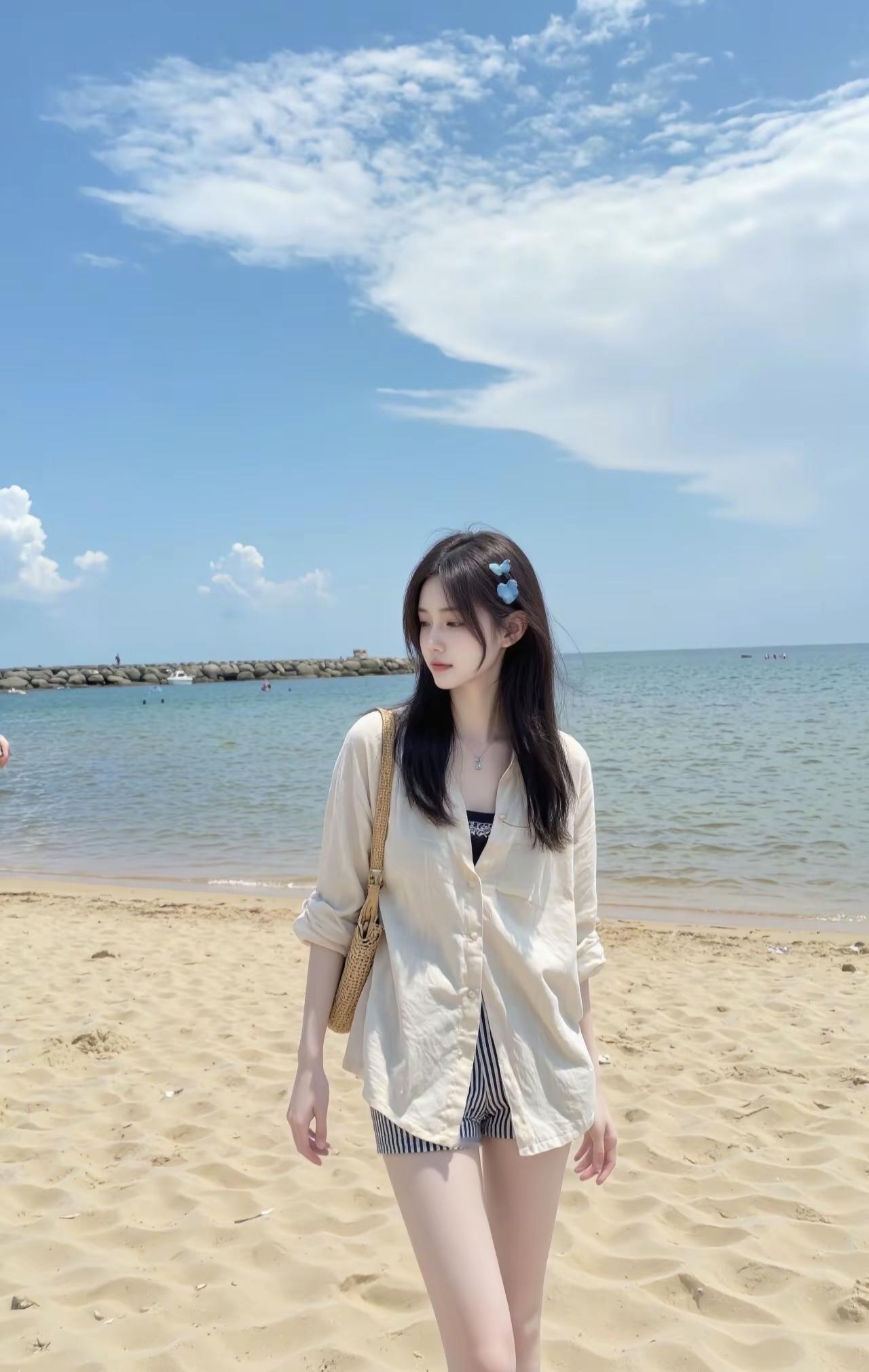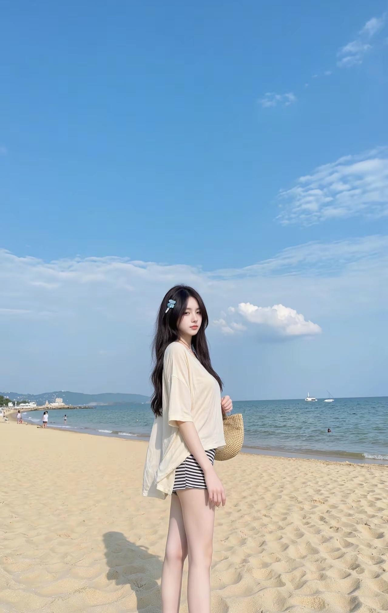 海风把头发吹成蓬松的形状,沙滩上的脚印和海浪一起晃。今天的温柔是浅米色的,连风里都裹着海盐味的晴朗。