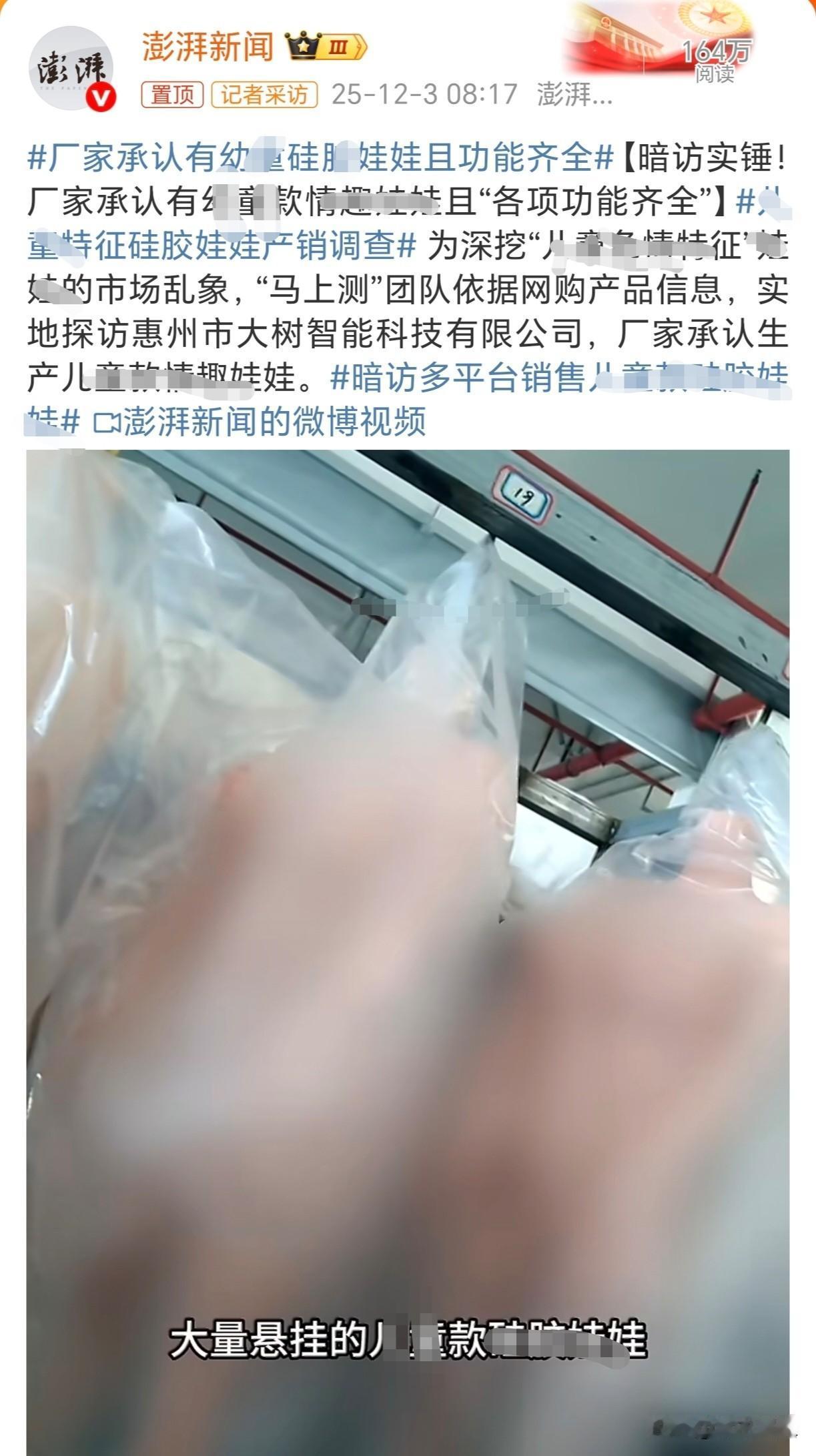 只要有利可图,人心的邪恶就会完全暴露。 这新闻看的真是让人震惊,愤怒。不明白这种东西为什么能够销售,平台和监管到底是怎么过审的。卖家竟然还能毫不遮掩的说“功能齐全”,真是让人脊背发凉。 某些不良商家,劝你们善良些,生产这种东西究竟是何居心?难道自家没有孩子吗?人的欲望就像是无底洞,很难满足。一旦使用者发现假的无法再满足不了那种扭曲的“刺激,就很可能激发出内心的恶,最后朝真人下手。 这种畸形产业链的存在就是对整个社会良知的践踏,绝不能姑息,必须被连根拔起。