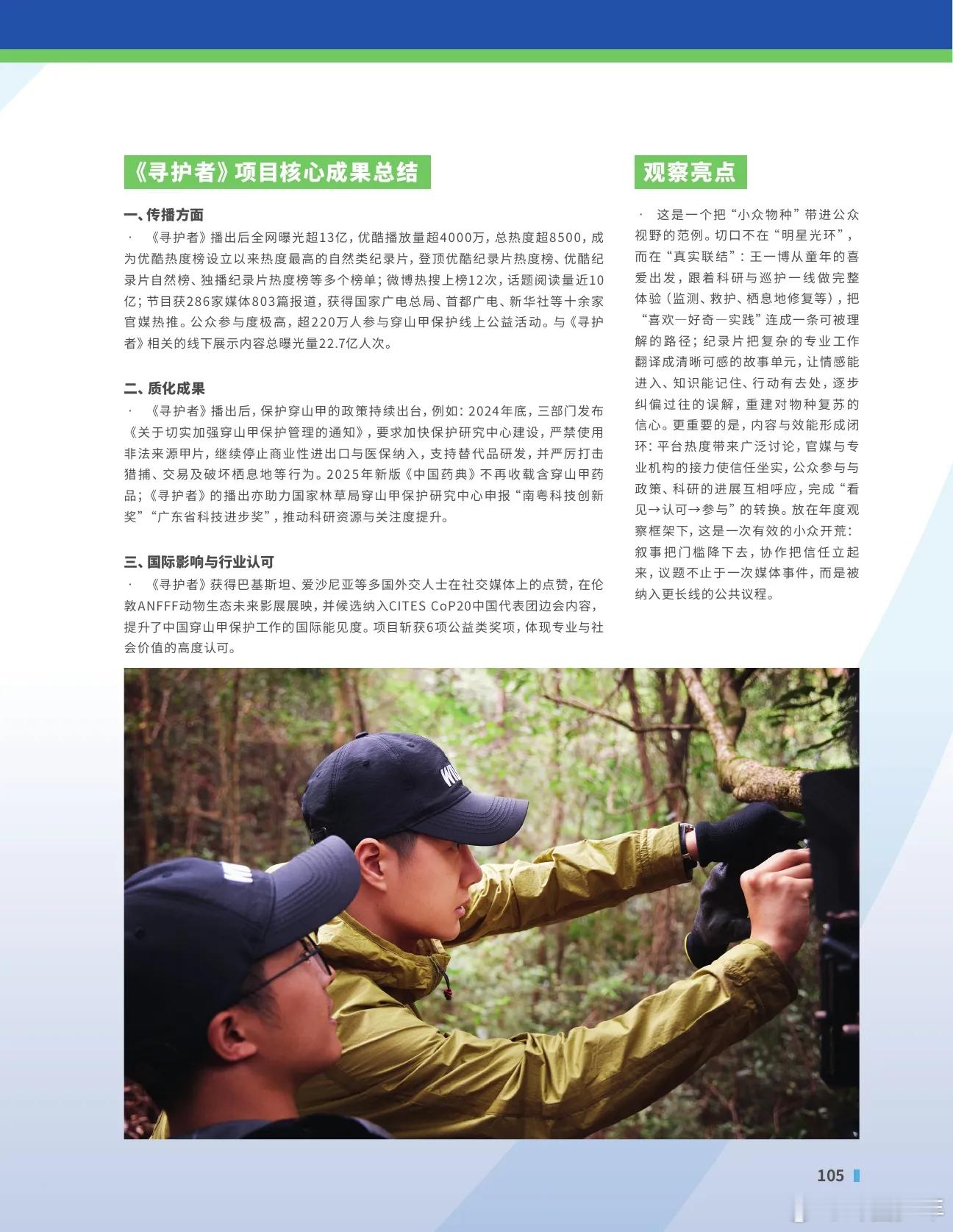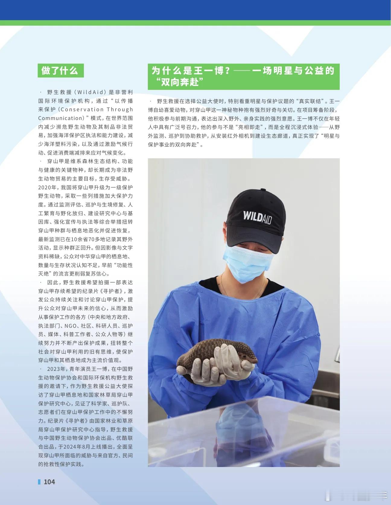 王一博入选年度明星公益优秀案例王一博成为年度明星公益优秀案例 《寻护者》的公益影响力太能打了!不仅带火小众物种保护,还实现平台热度、政策跟进、公众参与的良性闭环,王一博用行动诠释了流量该有的正能量!