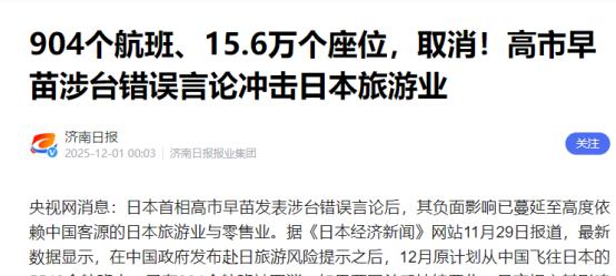 截至11月27日,12月原计划5548个航班中,904个(占比16%)已决定取消,涉及约15.6万个座位。最狠的是,两天内取消航班从268个暴增到904个,翻了3倍多。 成田机场的地勤人员正对着电脑屏幕反复核对取消通知,打印纸堆在桌上像小山,每一条航线划掉的红圈都刺眼。这场航空业的震动,牵扯着中日航司、百万旅客和日本旅游业的神经,而导火索藏在更早的外交表态里。 冲绳那霸市国际通大街的药妆店老板佐藤最近总在傍晚提前关店,货架上的面膜礼盒落了层薄灰——往年这个时候,中国游客的行李箱能塞满他半个仓库,现在连免税柜台的导购都凑在一起聊天。 航班管家的监测曲线早透出异常。11月24日,未来一周赴日航班取消率悄悄爬上12%,到27日猛地窜到21.6%,红色警戒线在屏幕上闪个不停。这不是零星调整,12条定期航线被整整齐齐“剃了光头”,连备份航班都没留。 天津飞关西的航线最“惨烈”,65%的航班直接消失,南京飞关西的取消率也逼近60%;连上海、广州这些“黄金航线”,飞关西的航班也有三成停飞。国航、东航、南航的logo在取消列表里排着队,连春秋航空那抹橙色都没逃过,九元航空的低成本优势在此时毫无用处。 这些取消真的只是航司“看天吃饭”?有人说这是冬季旅游淡季的正常调整,但同期中国赴韩航班取消率仅5.2%,东南亚航线甚至加了班次;日本旅游业内部报告也承认,11月中旬起,中国旅游平台的赴日搜索量就跌了43%,这显然不是市场能解释的。 日本观光厅的账本上记着清楚的账:今年前10个月,820万中国游客贡献了超过1.2万亿日元消费,平均每人花掉15万日元,相当于在日每天消费3000元人民币。现在15.6万个座位空着,按人均消费算,就是234亿日元(约11亿人民币)的直接损失,还不算民宿、滑雪券这些连带取消的订单。 中国政府的反制向来精准。先在联合国安理会亮明日方涉台言论的错误,让国际社会看清是非;再用旅游风险提示引导市场,航司根据预订量调整航班——这不是“断供”,而是用经济杠杆告诉日方:外交底线碰不得。 短期看,成田机场的免税店柜姐开始学韩语,期待韩国游客填补空缺;长期来说,这记“经济耳光”让更多国家明白,和中国打交道,尊重主权是前提,任何挑衅都要付代价。 904个取消航班的数字还在变,12月最新数据显示取消率已超40%,1900多个航班停飞。当日本外相茂木敏充还在说“希望对话”却不收回错误言论时,成田机场那堆打印纸里,或许藏着日方最该看懂的答案——尊重,从来不是单方面的。