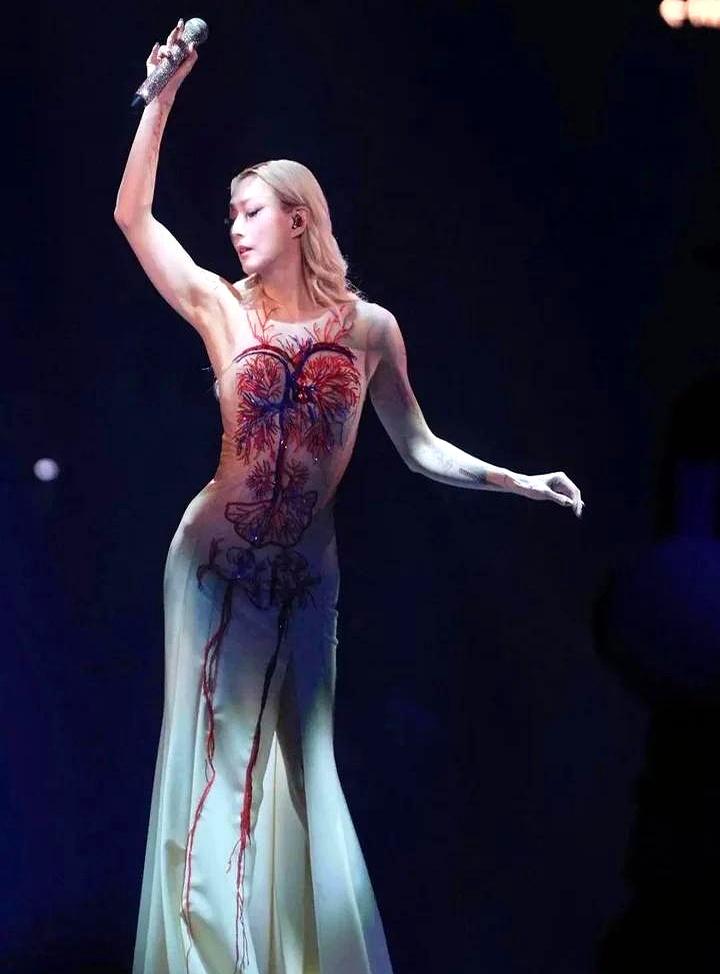 郑秀文把心脏、肺、肾全穿在身上,红馆灯光一亮。 她就那么直白地把一堆血淋淋的“零件”穿出来,逼着台下的每个人都去直面自己身体里那些看不见的东西,那些维持我们活着的脆弱。 她把艺术的刺痛感先甩给所有人,然后大家看完演唱会转头就去登记了器官捐献。 这种先痛后暖的温柔,只有她给得出来。