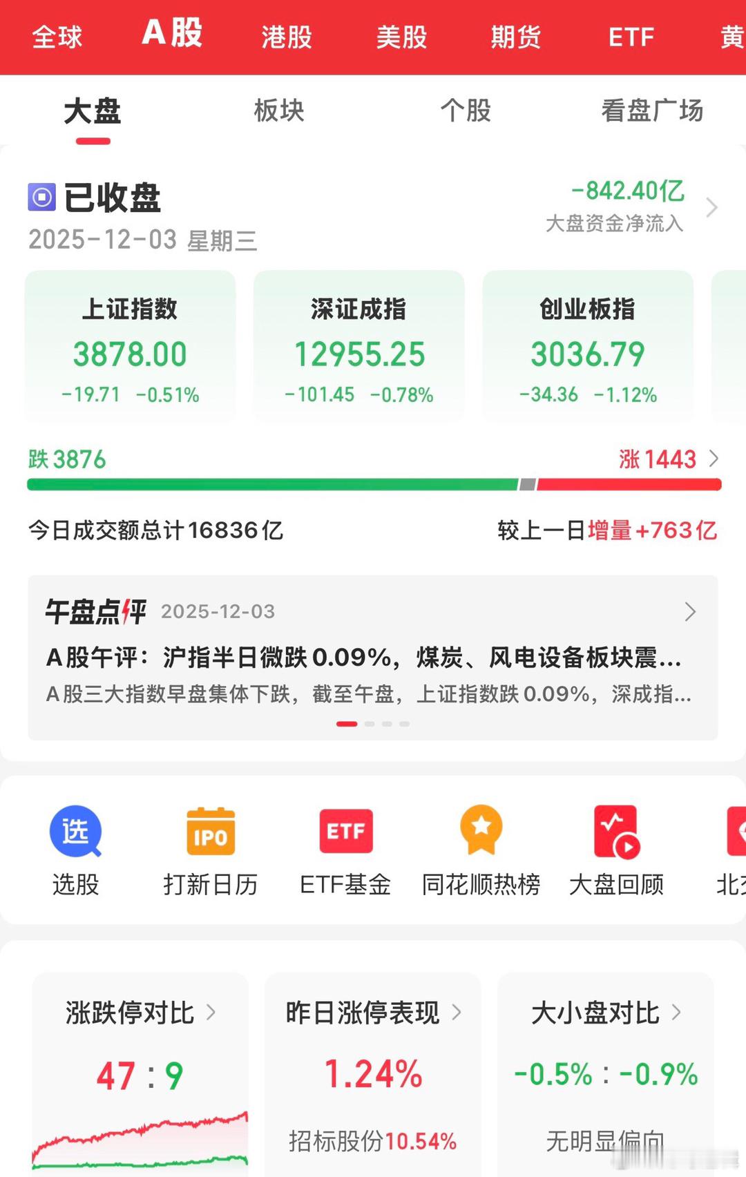 今天大A表现出了意料之外的弱势状态。三大指数全线飘绿,双创板跌幅较大。科技板块又一次成了重灾区。本来认为今天应该在3888 ~3900之间震荡整理就可以了,没想到下午大盘放量下跌,沪指一度跌破3870点,跌破10日均线位置387 9点。这样的状态对后面的影响会比较明显的。个股近3876只下跌,属于普跌行情,下午跌停股的数量又增至二位数。大盘资金净流出近900亿,成交额1.6万亿,放量763亿。赚钱效应较难,个股机会难以把握,多看少动,控制好仓位是不错的选择。