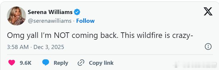 小威要在2026复出?根据BEN透露,小威已被重新纳入国际网球诚信机构(ITIA)的反兴奋剂计划中,这是考虑重返赛场的必要条件。规定指出,名单上的选手已宣布退役,除非在相关赛事前至少六个月接受非赛季检测,否则不能重返官方比赛。据悉,小威原本考虑在今年早些时候重返职业赛场,就在大威参加美网的几周前。她的名字据称已出现在2025年10月发布的一份文件中。这意味着,如果小威从那时起就接受定期的反兴奋剂检测,她最迟可能在2026年4月回归。小威随后回应:我不会回归。这场火热的传言太疯狂了。!热点现场