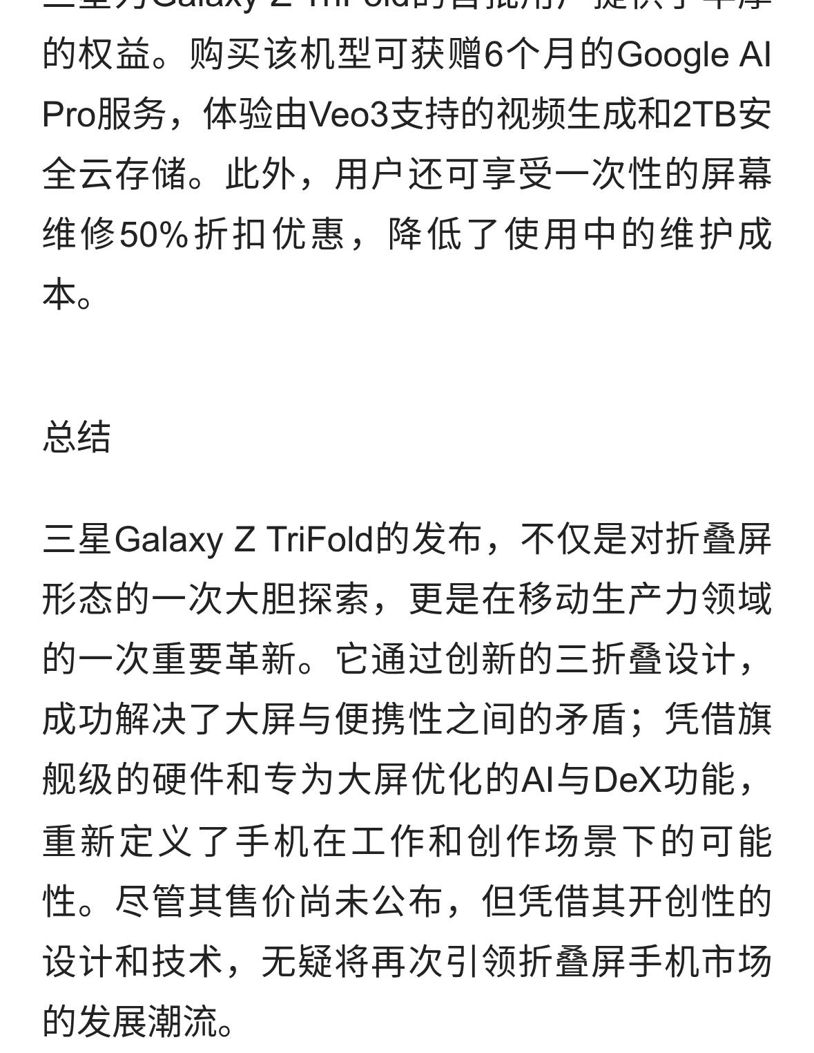 三星首款三折叠来啦!Galaxy Z TriFold这也是继华为之后...